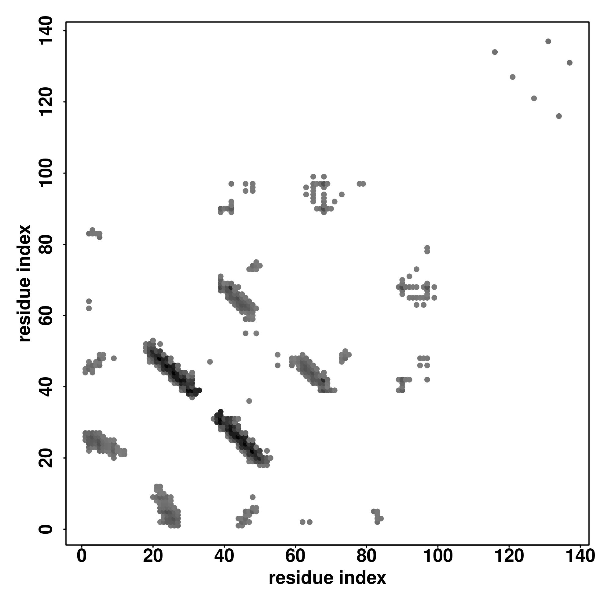 For the contact map, each dot represents a residue pair with predicted contact,