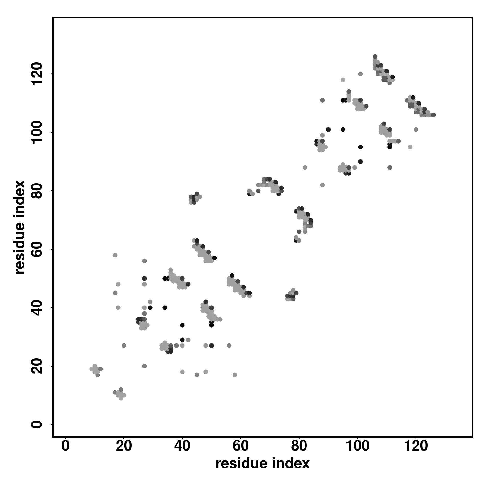 For the contact map, each dot represents a residue pair with predicted contact,