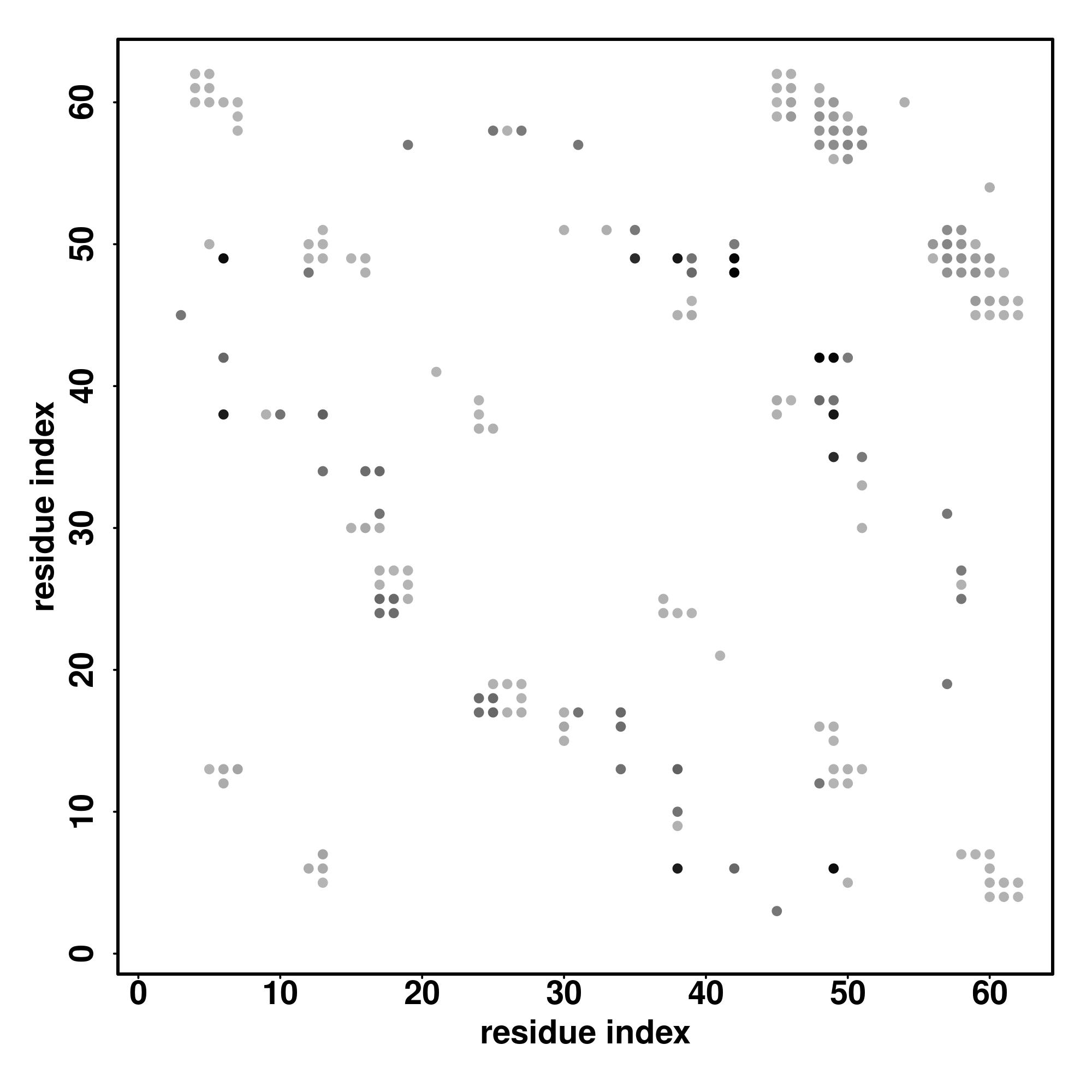 For the contact map, each dot represents a residue pair with predicted contact,