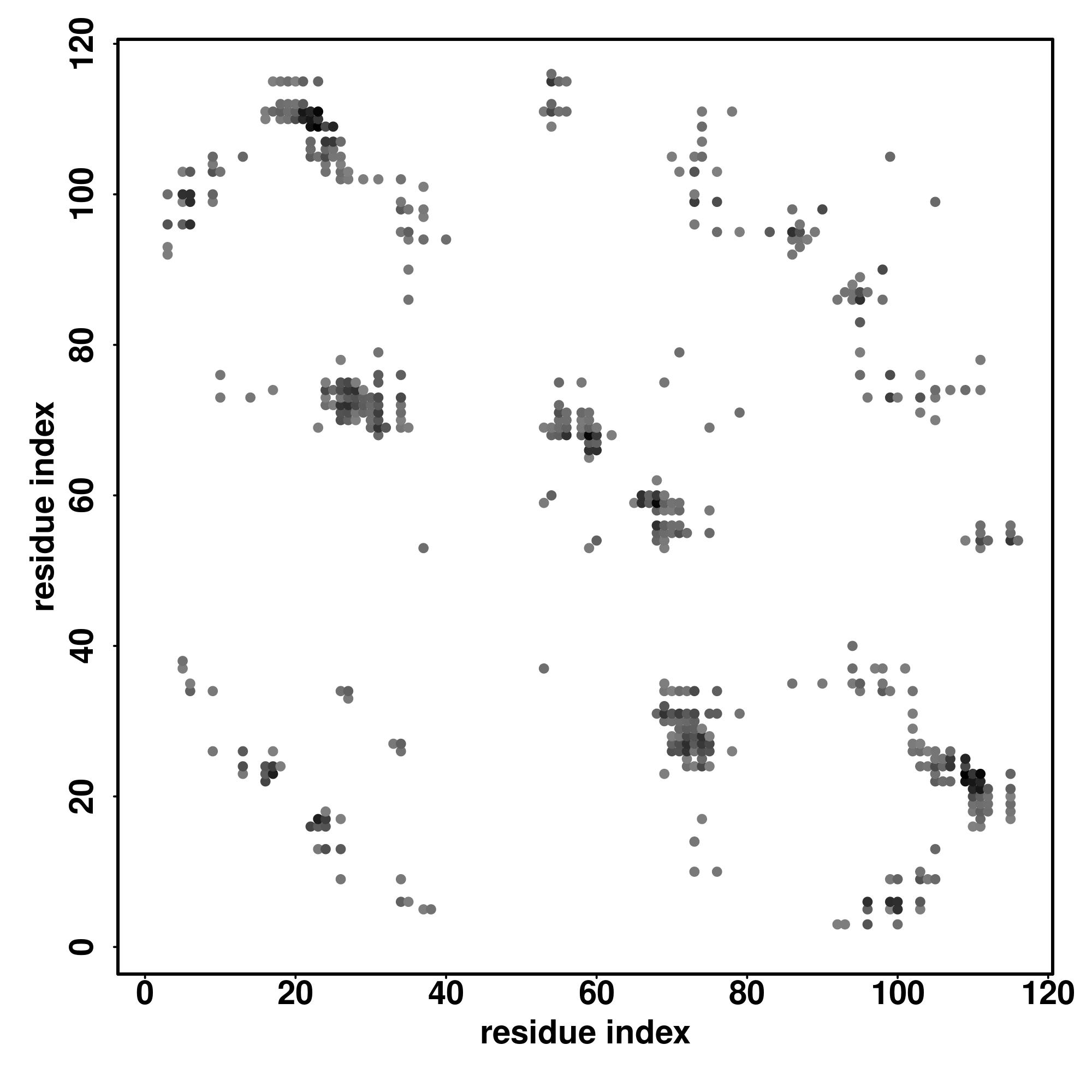 For the contact map, each dot represents a residue pair with predicted contact,