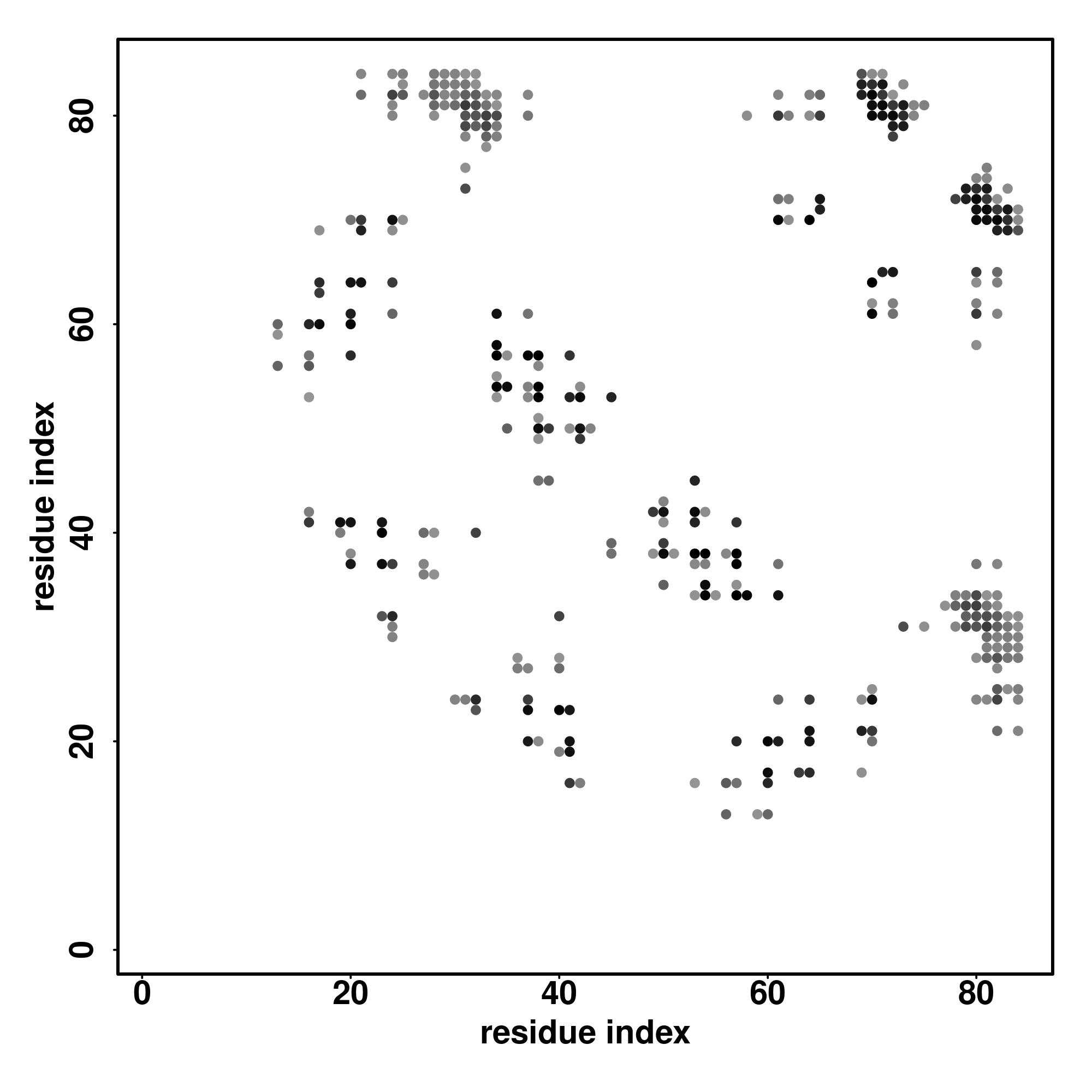 For the contact map, each dot represents a residue pair with predicted contact,