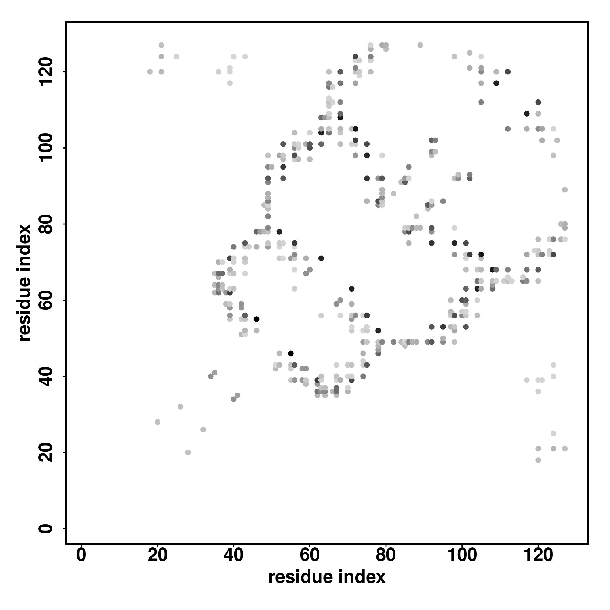 For the contact map, each dot represents a residue pair with predicted contact,