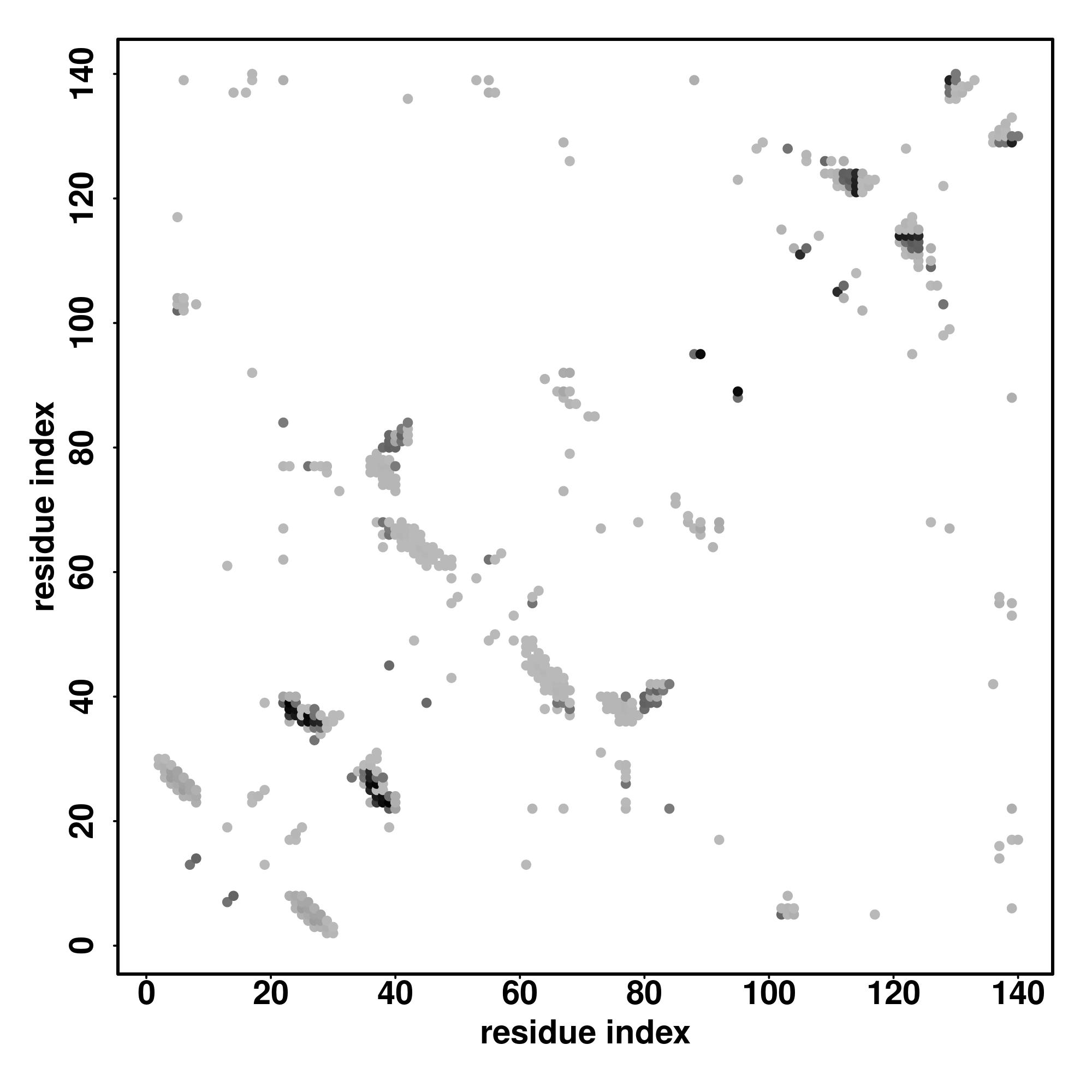For the contact map, each dot represents a residue pair with predicted contact,