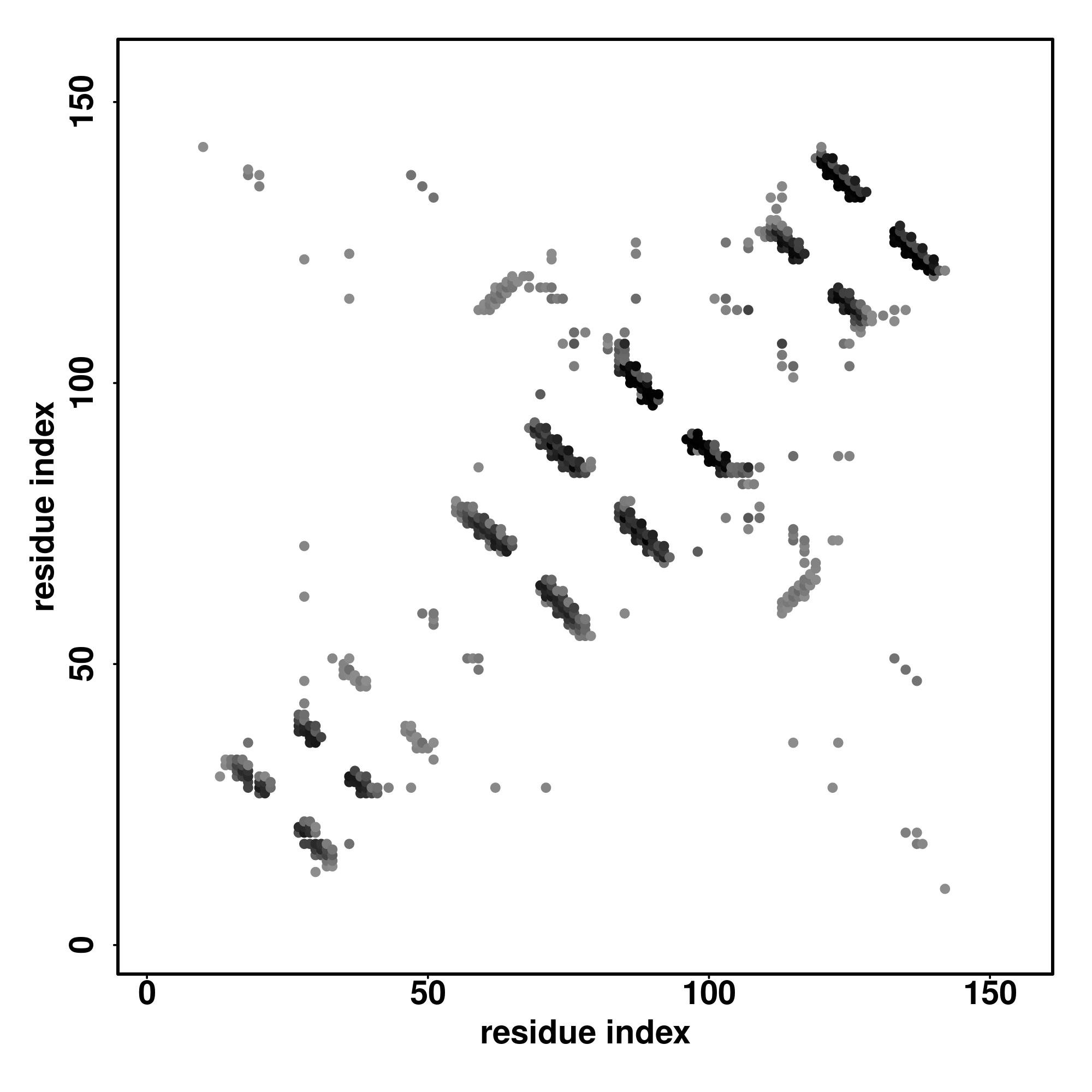 For the contact map, each dot represents a residue pair with predicted contact,