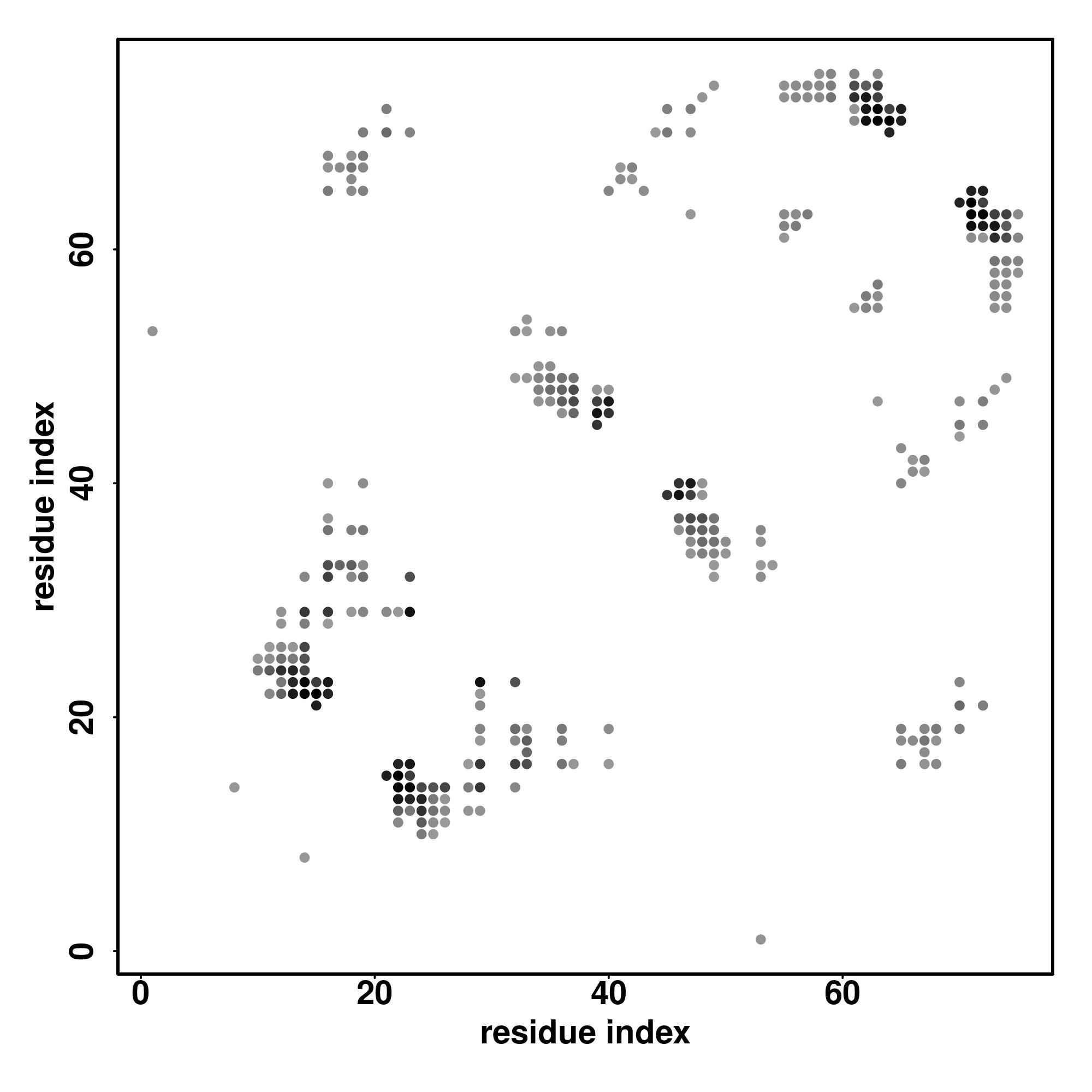 For the contact map, each dot represents a residue pair with predicted contact,