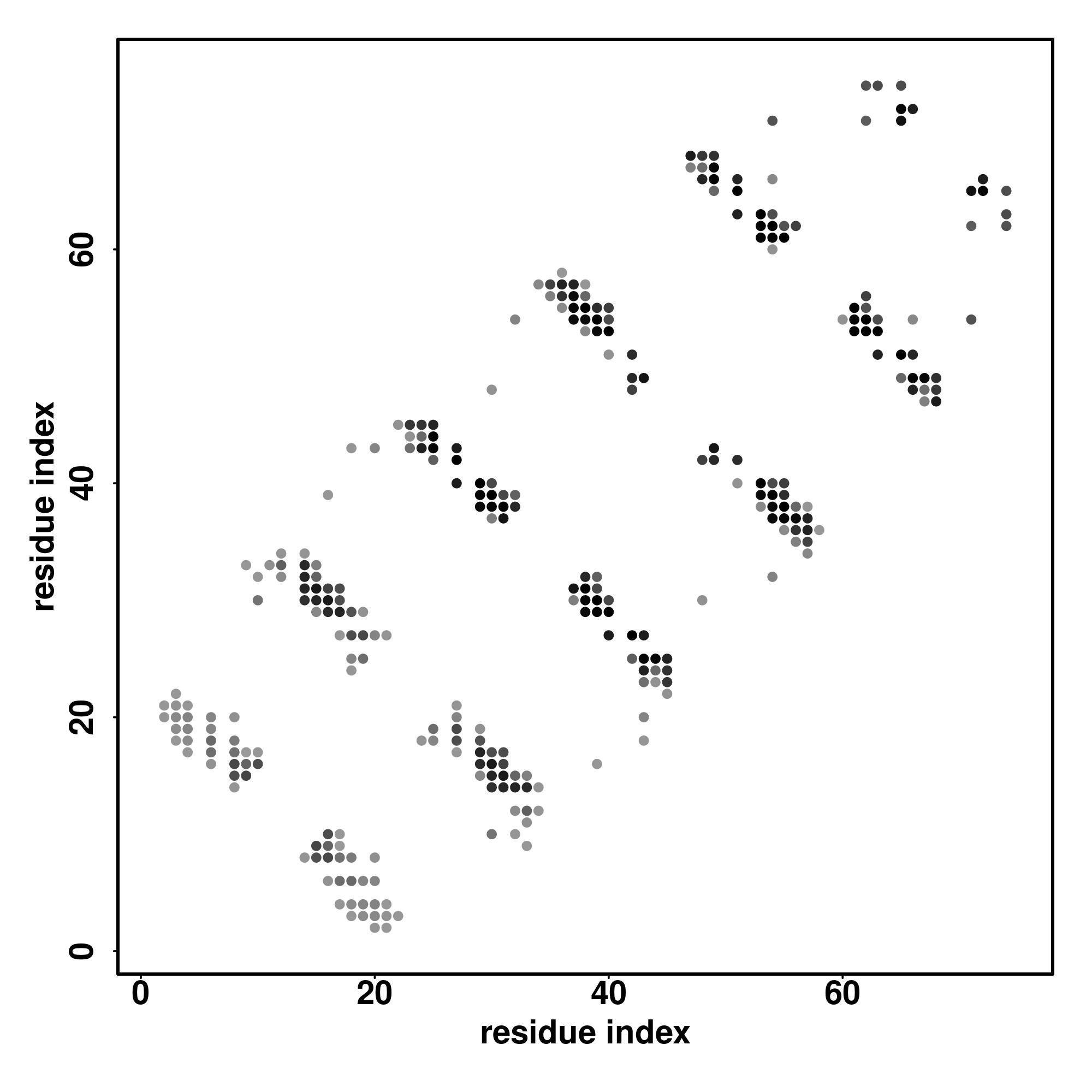 For the contact map, each dot represents a residue pair with predicted contact,