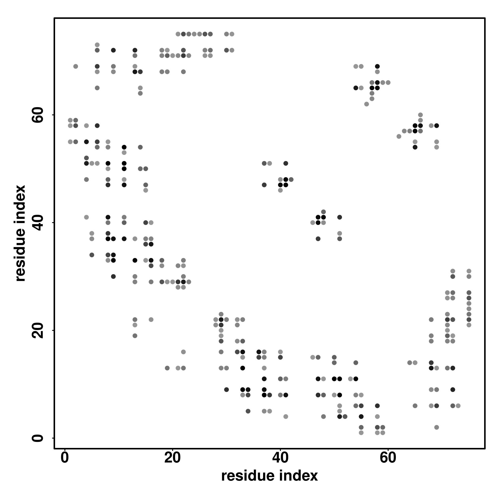 For the contact map, each dot represents a residue pair with predicted contact,