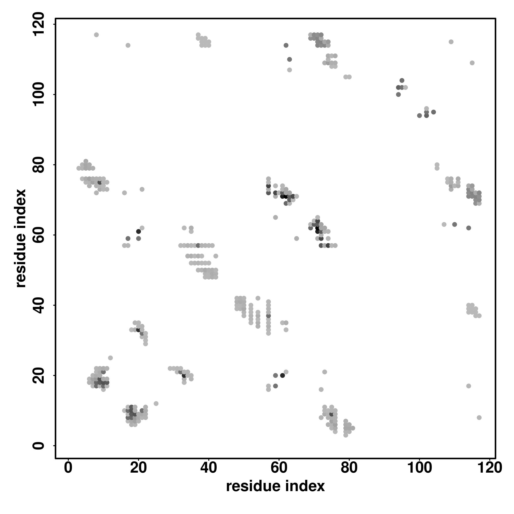 For the contact map, each dot represents a residue pair with predicted contact,