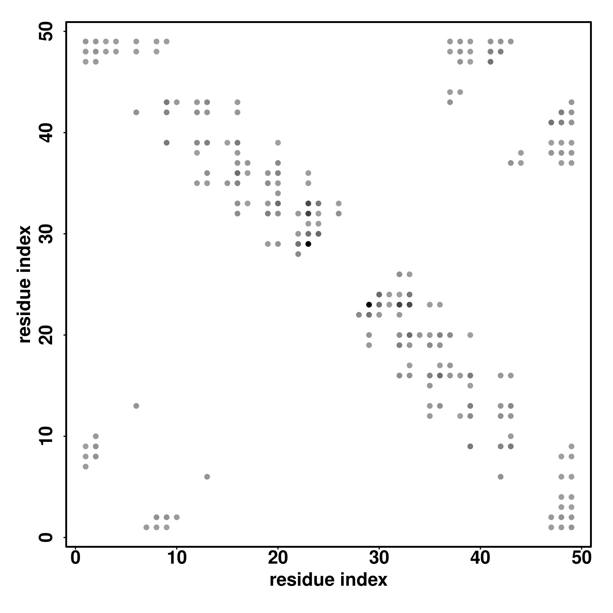For the contact map, each dot represents a residue pair with predicted contact,