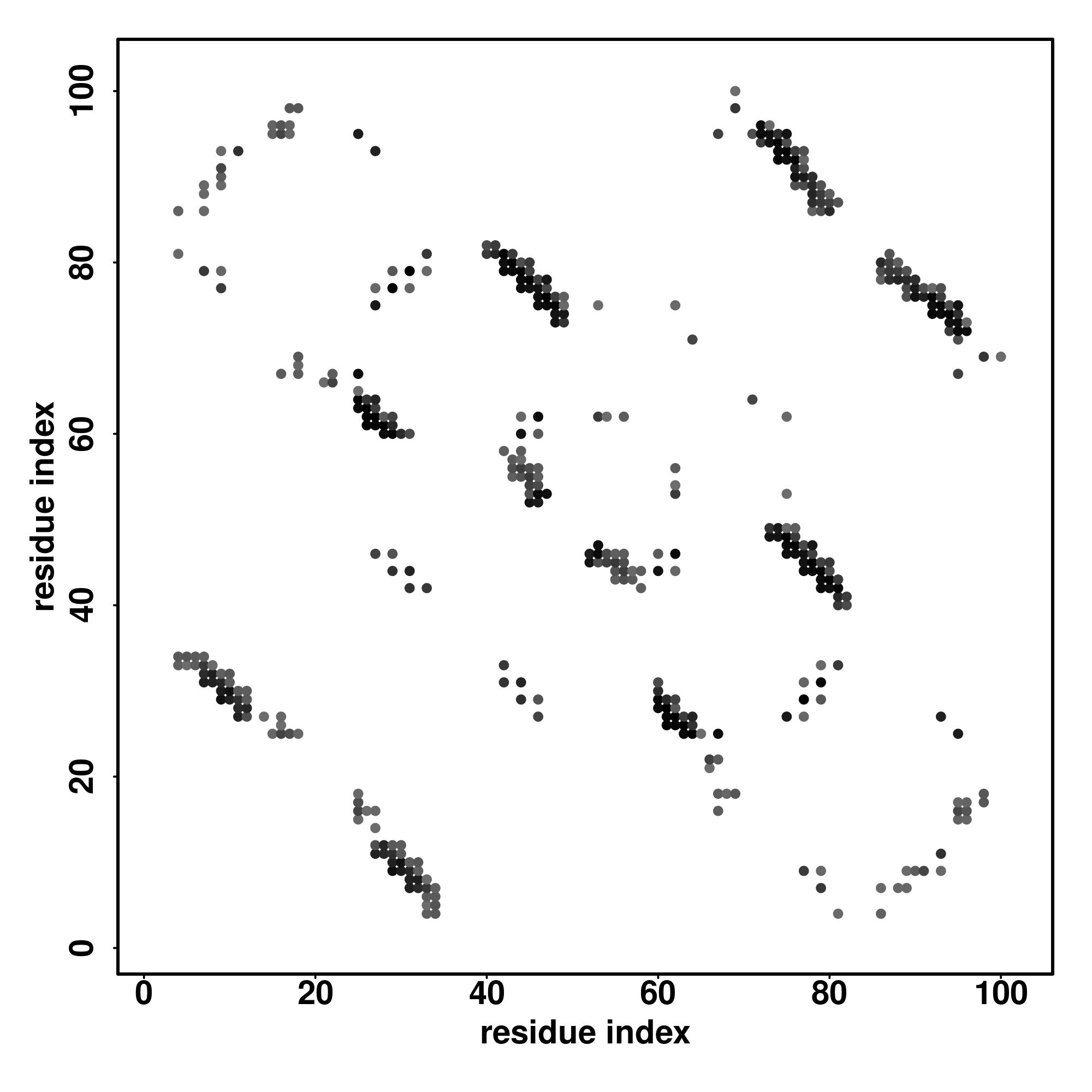 For the contact map, each dot represents a residue pair with predicted contact,