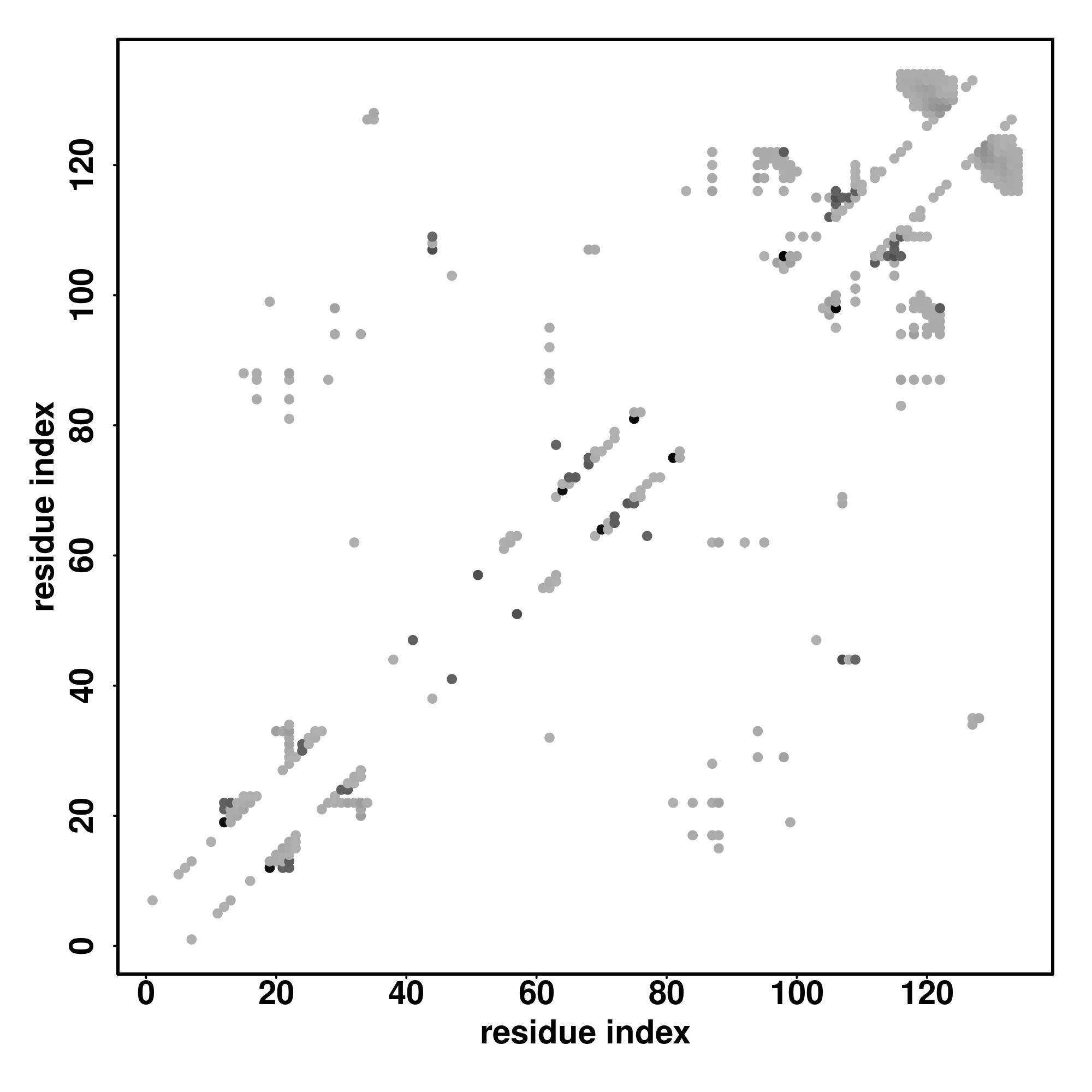 For the contact map, each dot represents a residue pair with predicted contact,
