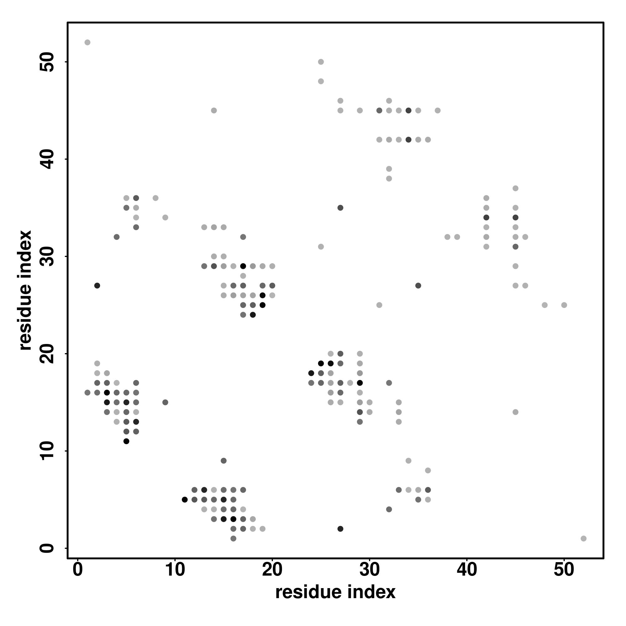 For the contact map, each dot represents a residue pair with predicted contact,