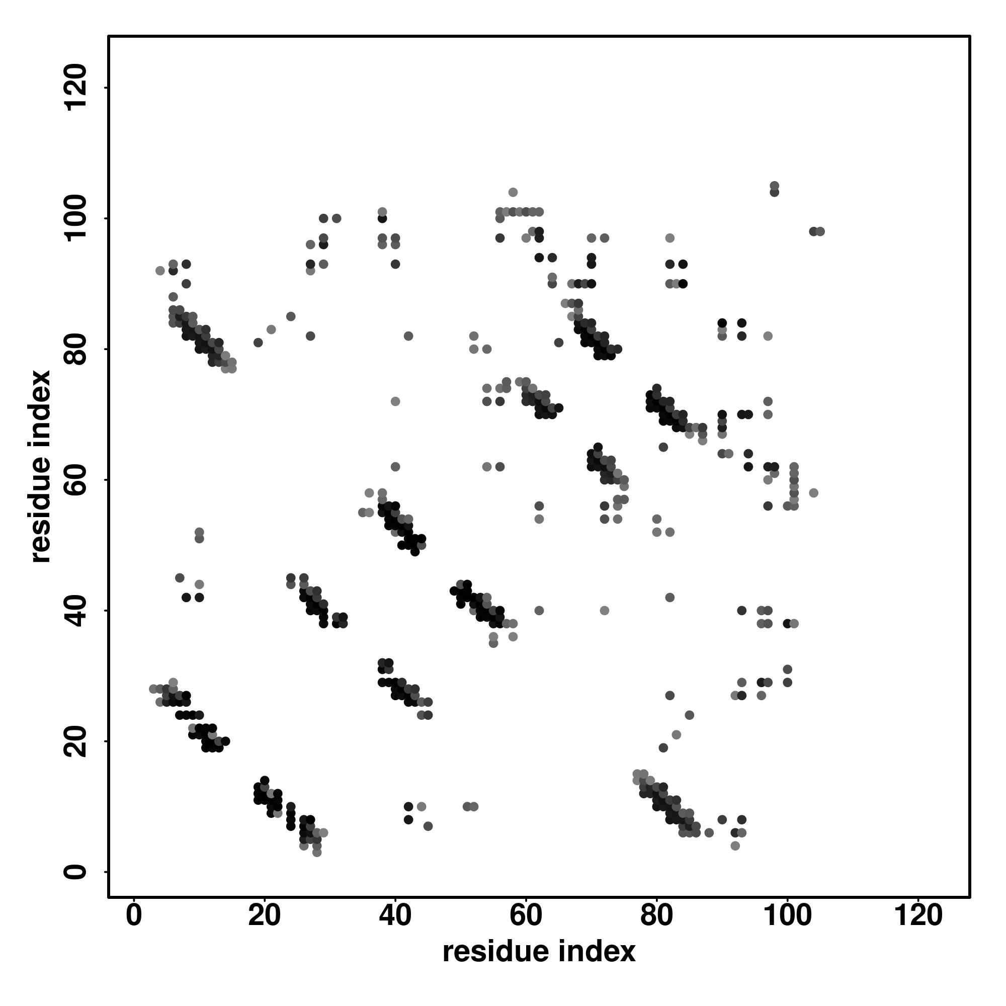 | Values range from 0 (buried residue) to 8 (highly exposed residue) | |