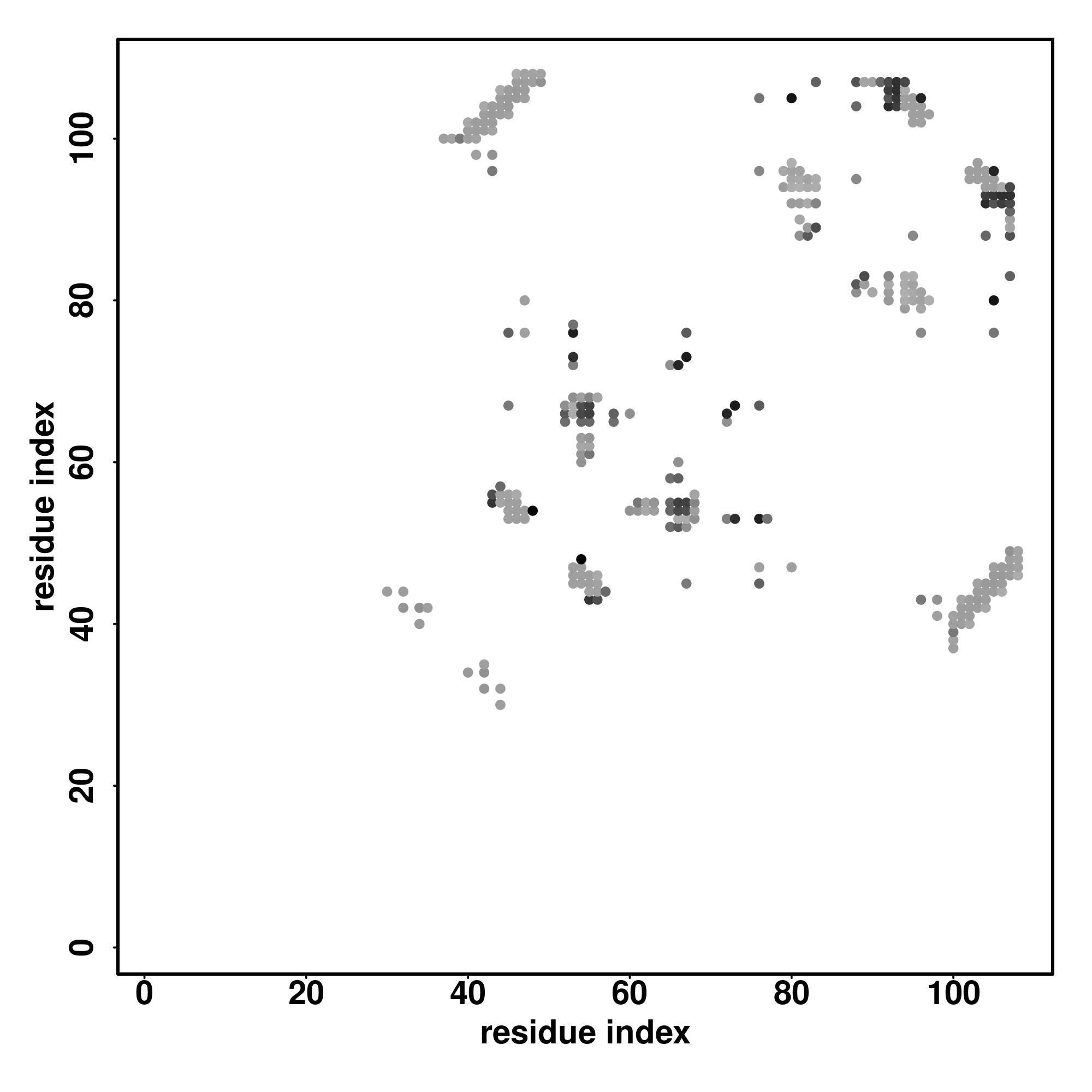 For the contact map, each dot represents a residue pair with predicted contact,