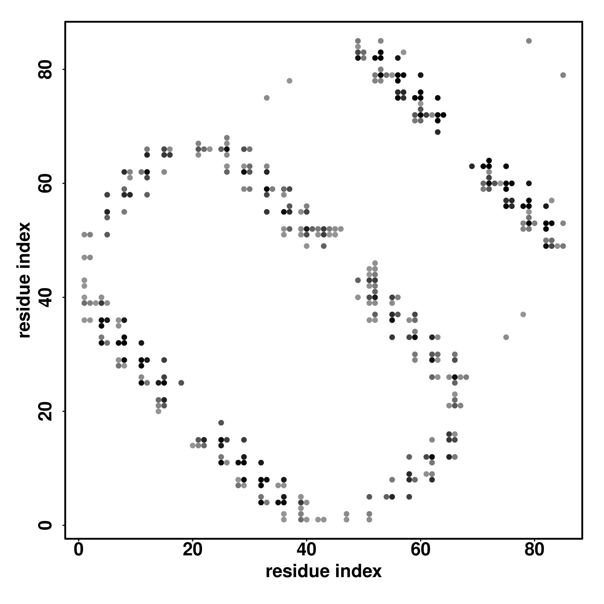 For the contact map, each dot represents a residue pair with predicted contact,