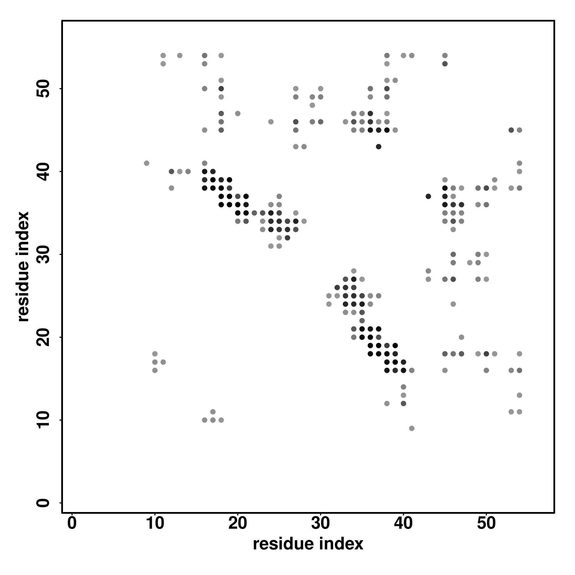 For the contact map, each dot represents a residue pair with predicted contact,