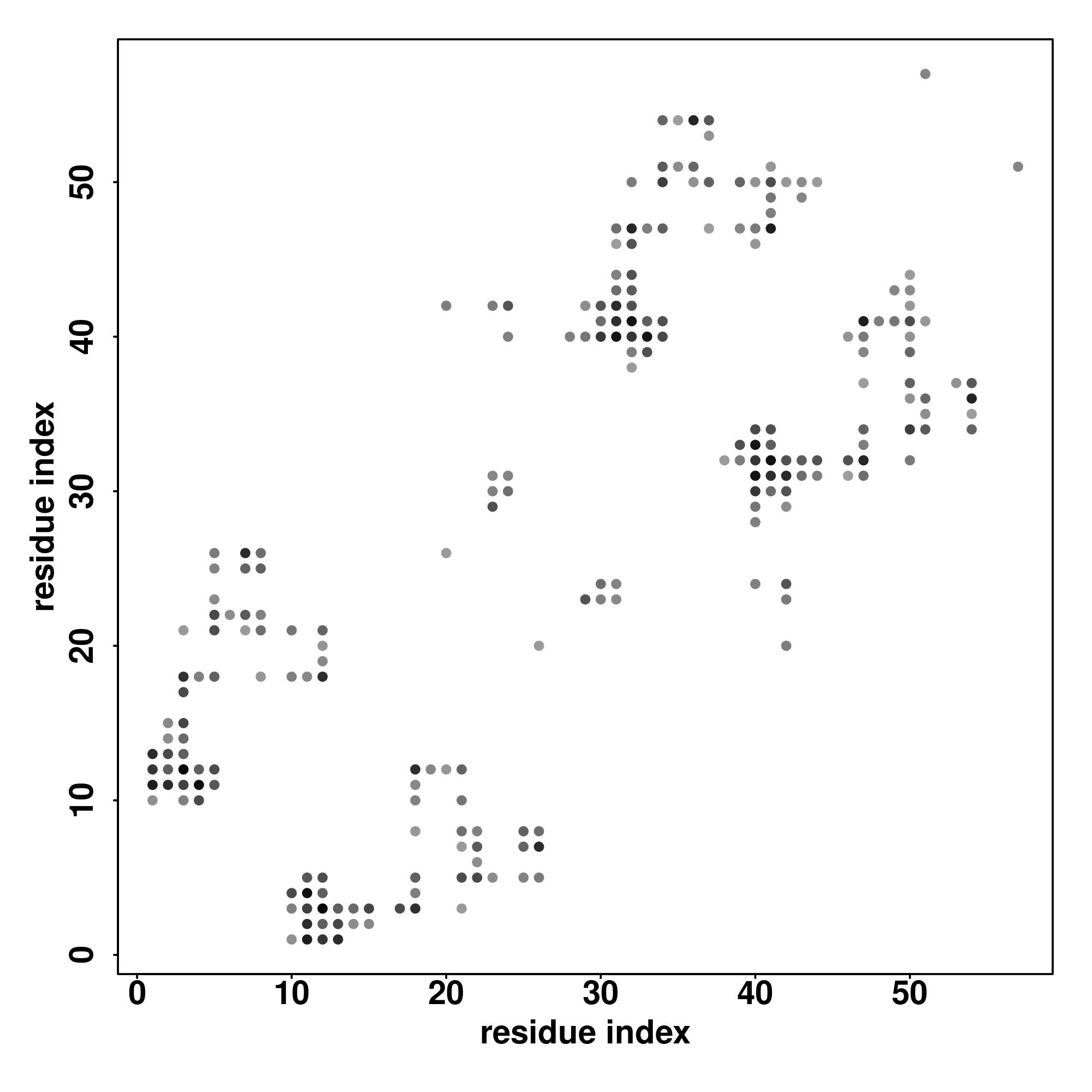 For the contact map, each dot represents a residue pair with predicted contact,