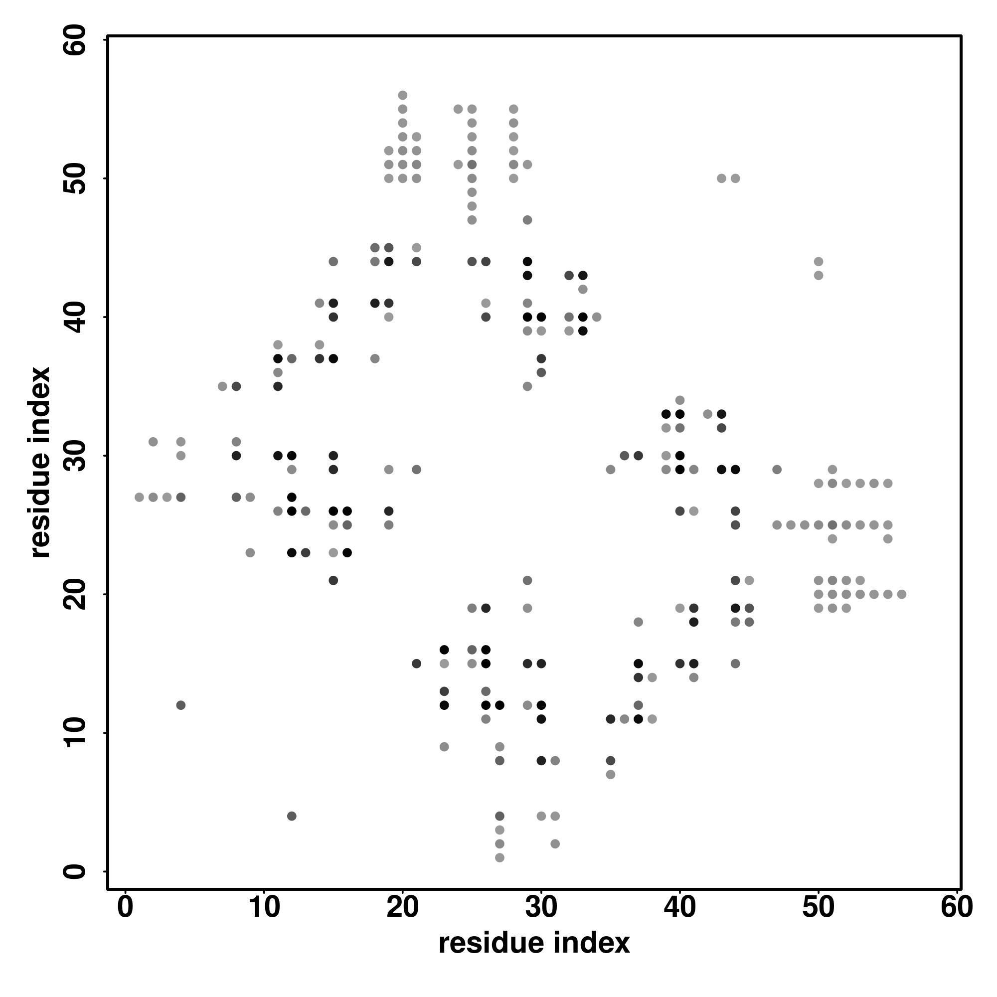 For the contact map, each dot represents a residue pair with predicted contact,