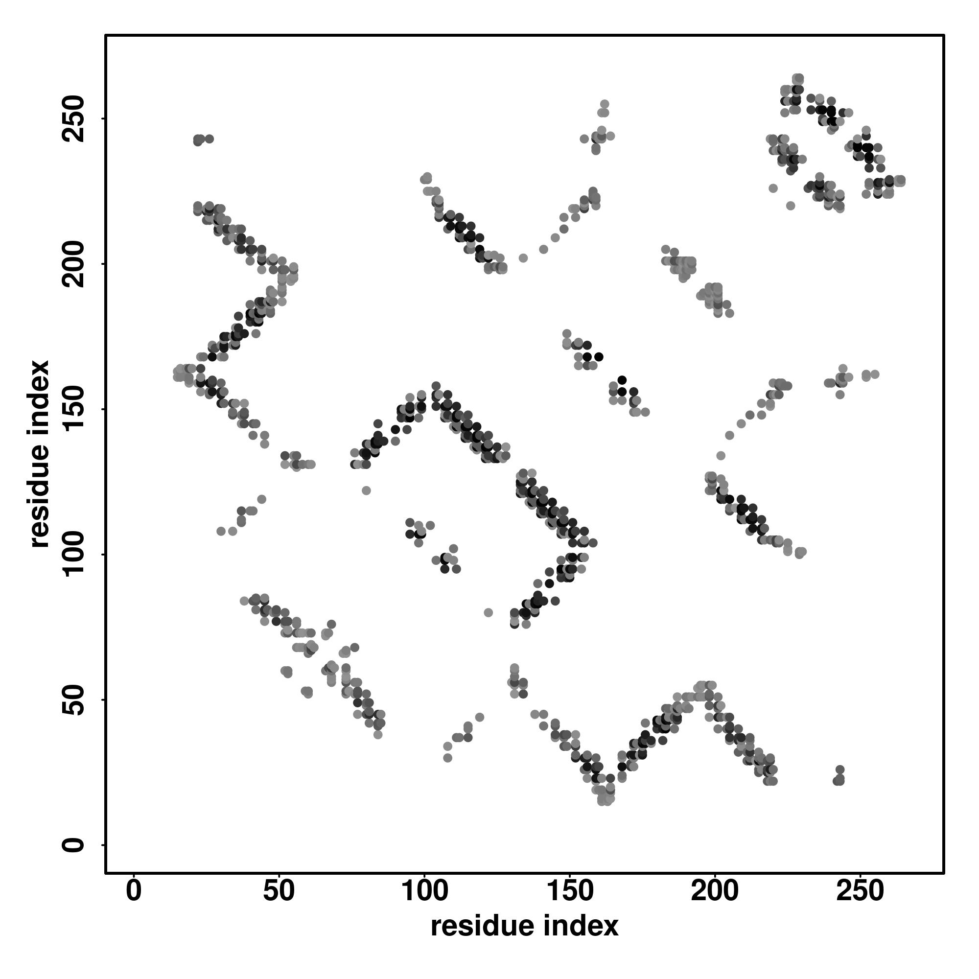 | Values range from 0 (buried residue) to 8 (highly exposed residue) | |