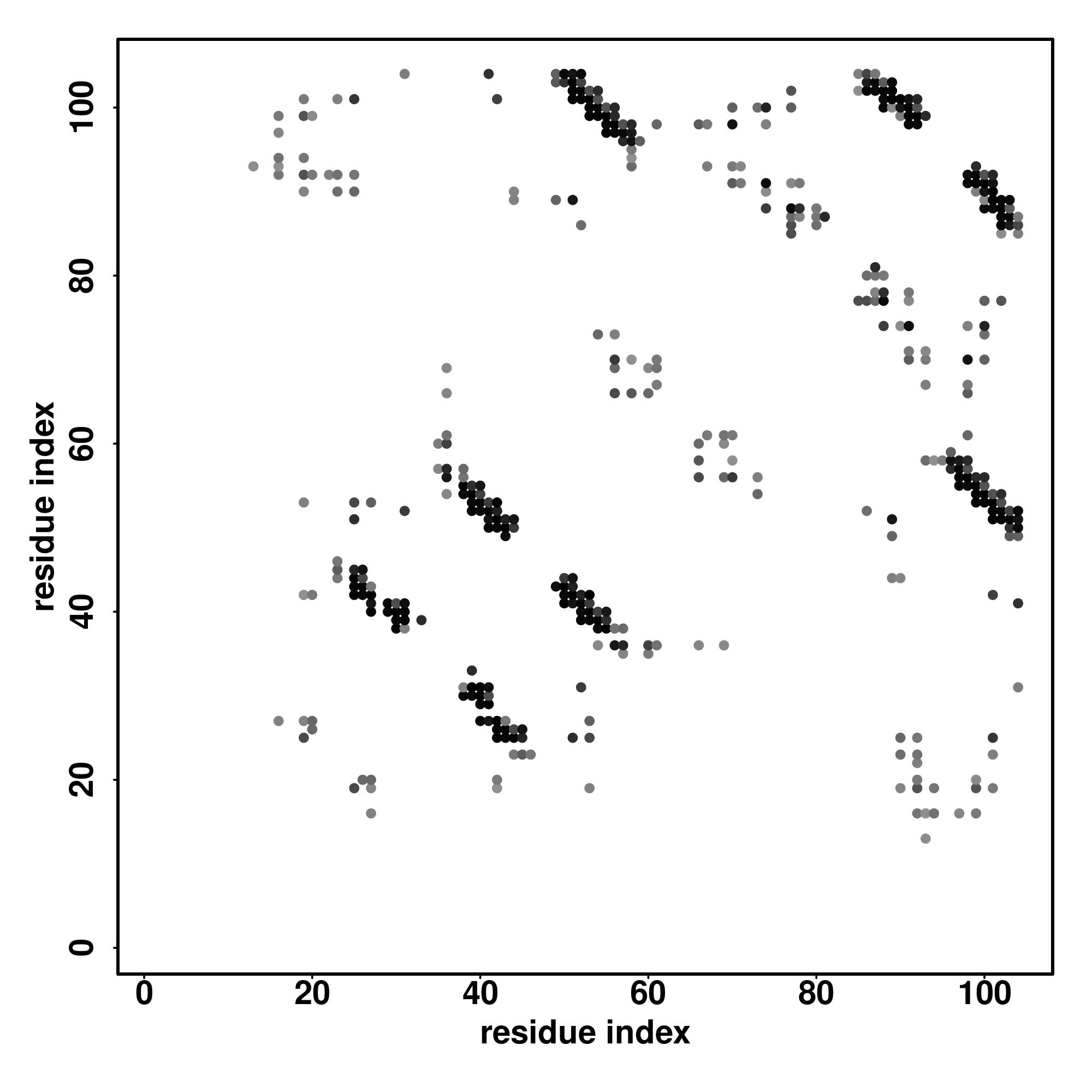 For the contact map, each dot represents a residue pair with predicted contact,