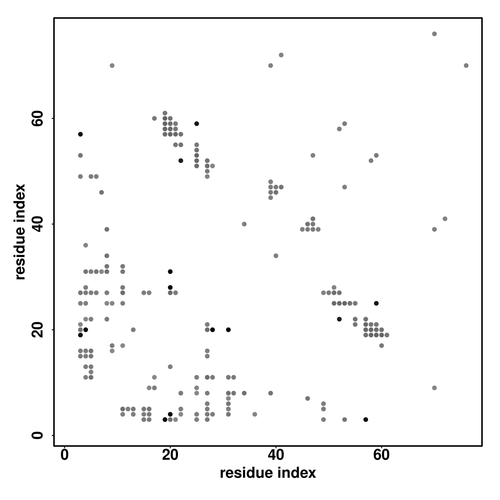 For the contact map, each dot represents a residue pair with predicted contact,