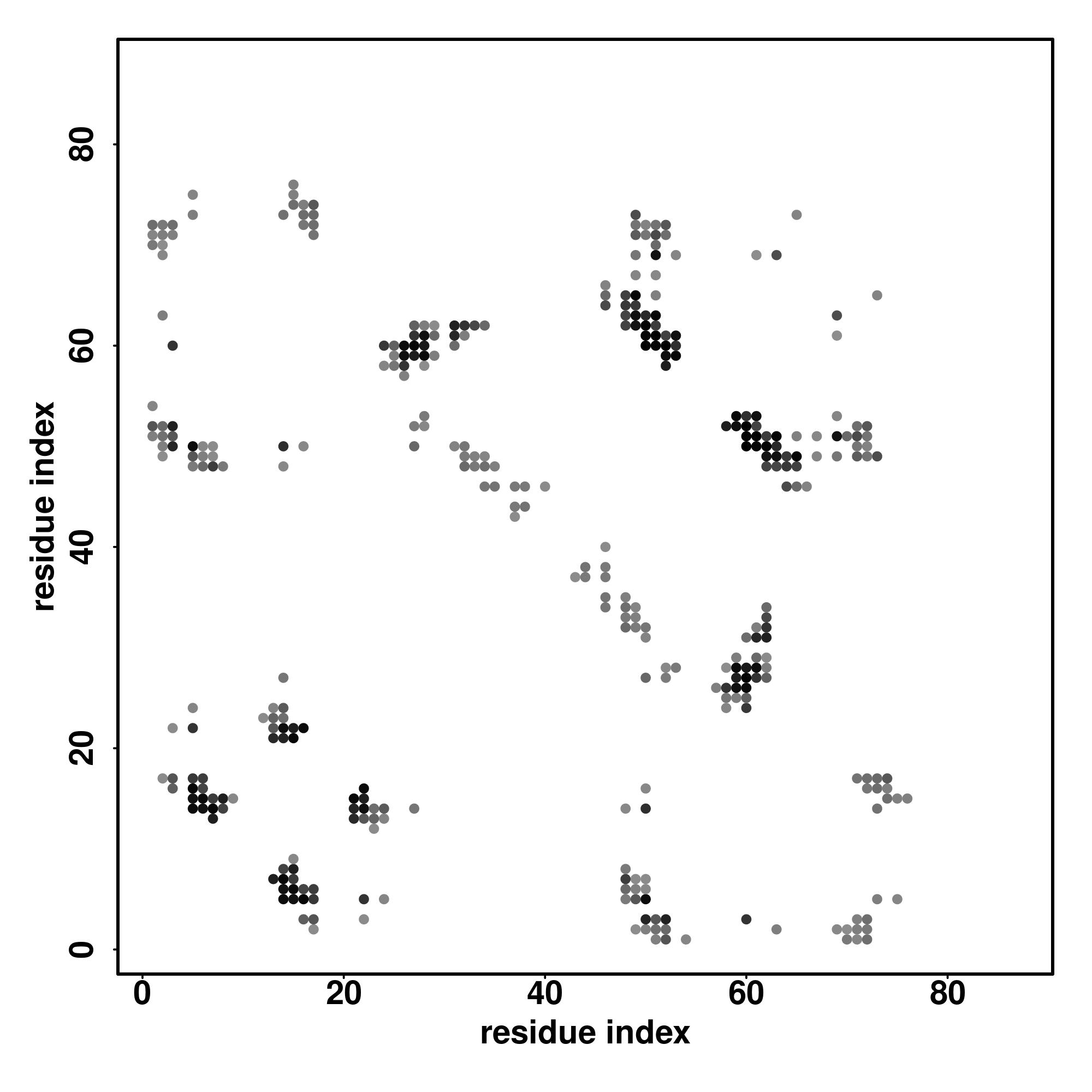For the contact map, each dot represents a residue pair with predicted contact,