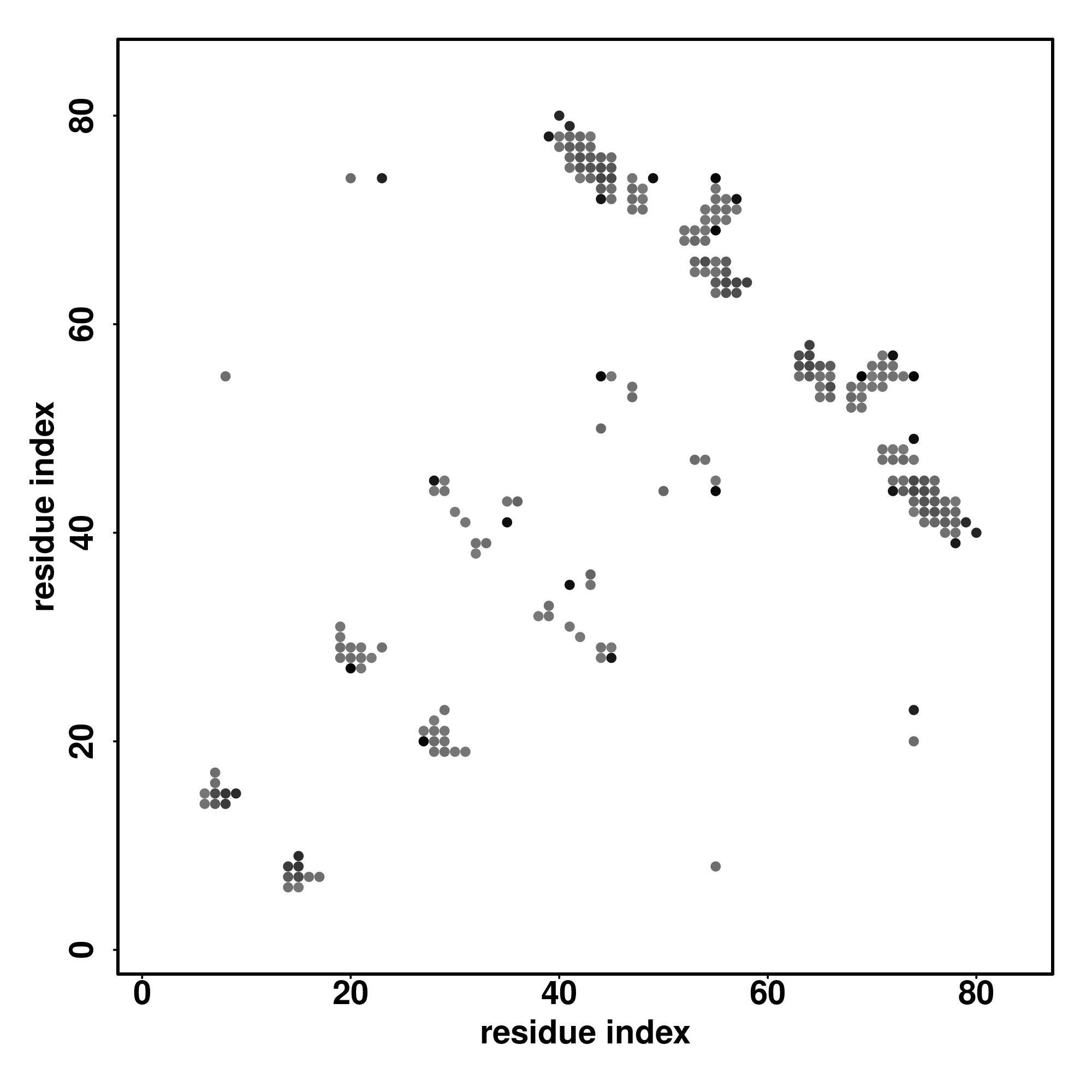 For the contact map, each dot represents a residue pair with predicted contact,