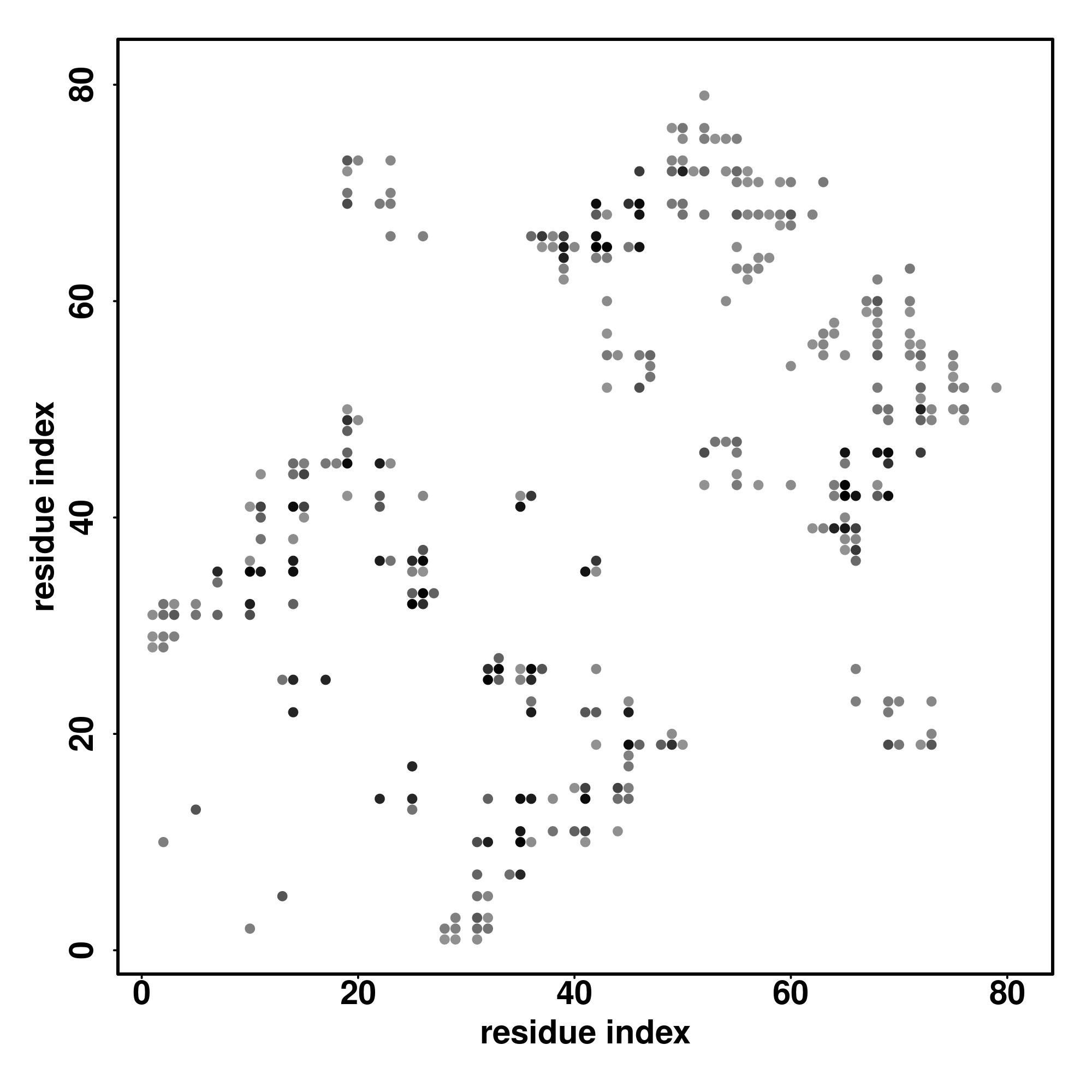 For the contact map, each dot represents a residue pair with predicted contact,