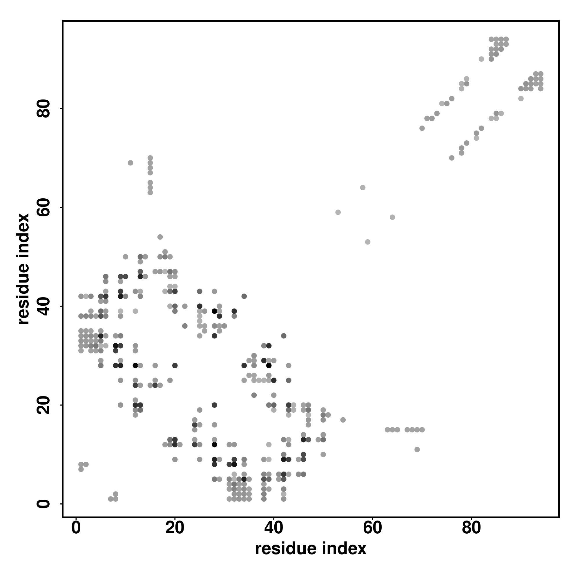 For the contact map, each dot represents a residue pair with predicted contact,
