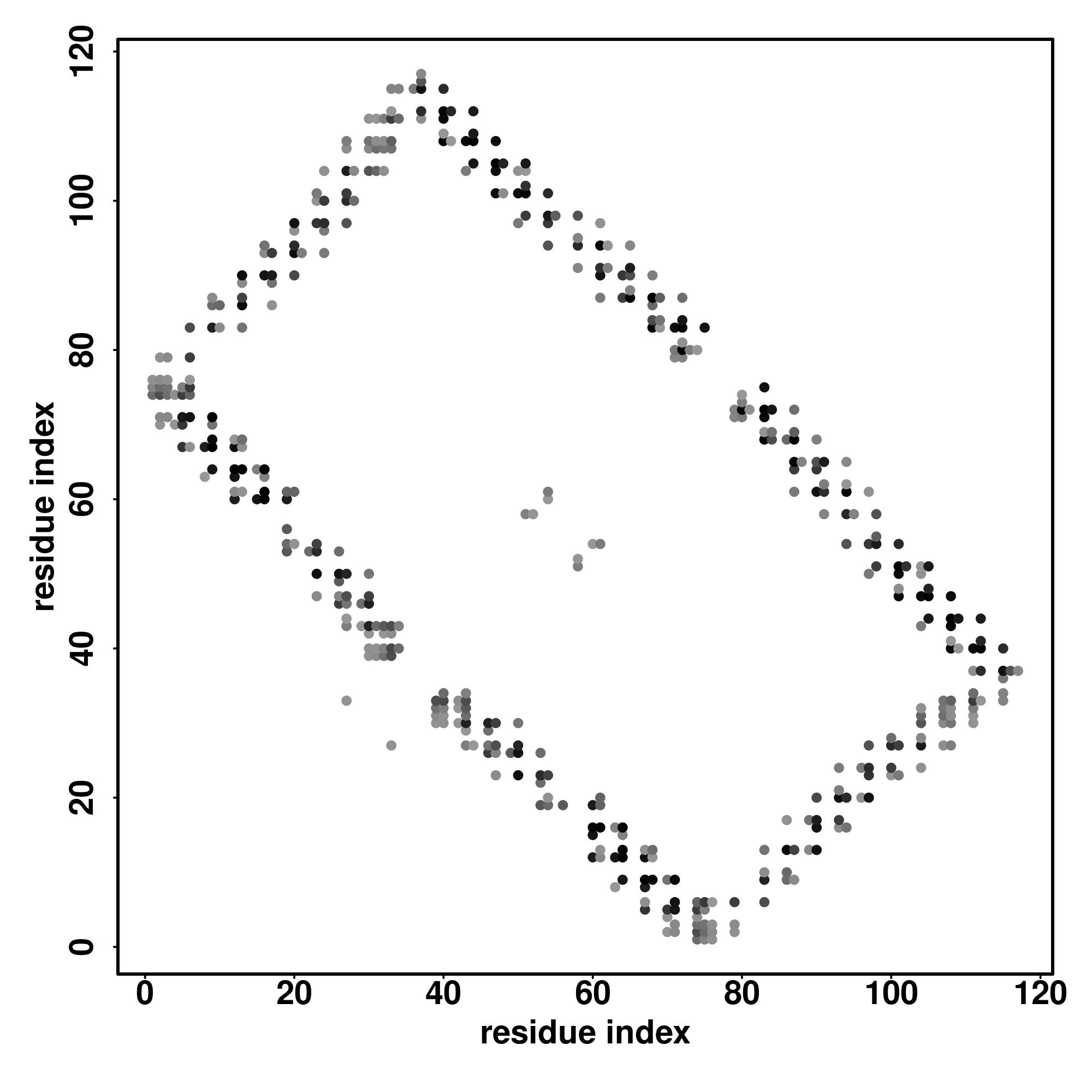 For the contact map, each dot represents a residue pair with predicted contact,