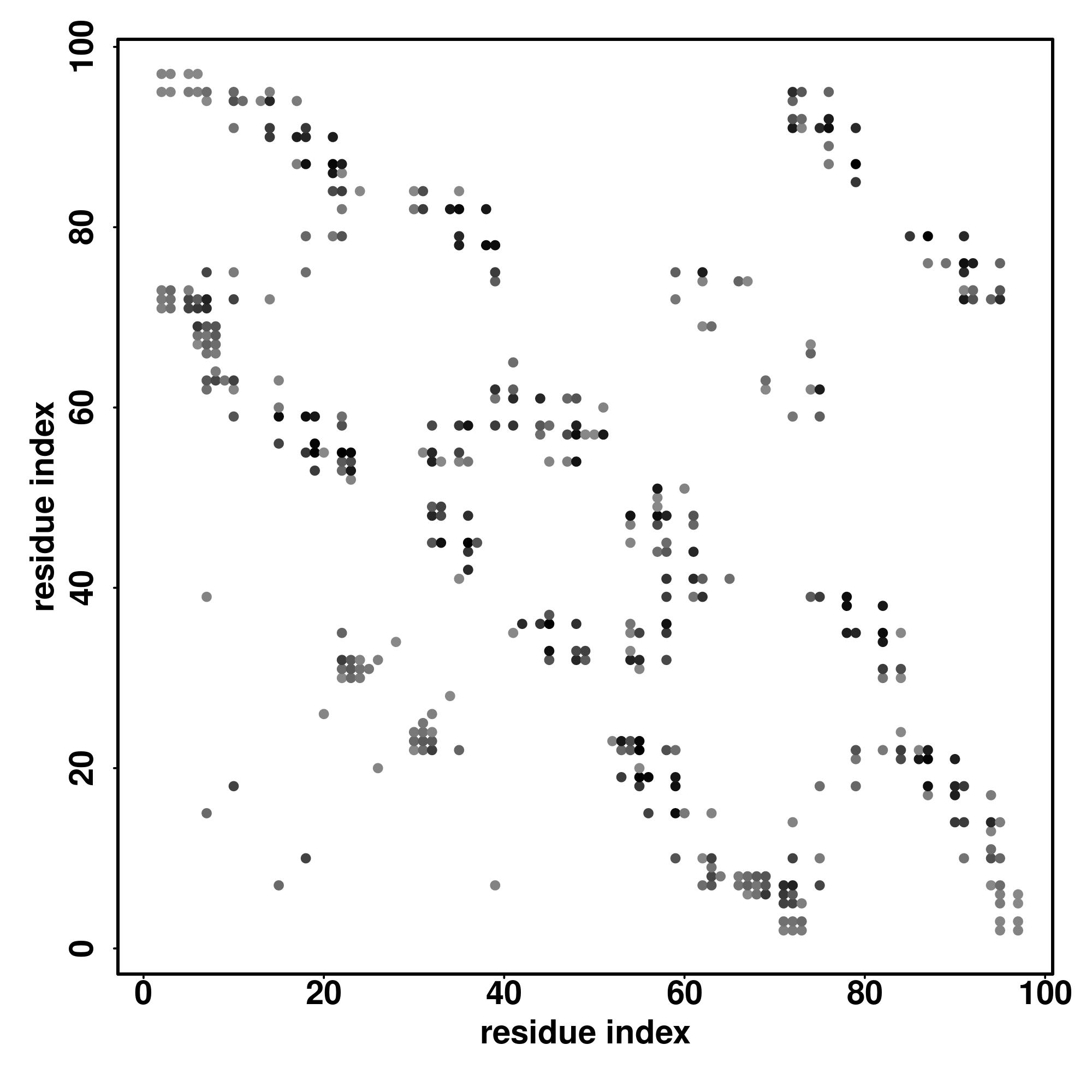 For the contact map, each dot represents a residue pair with predicted contact,