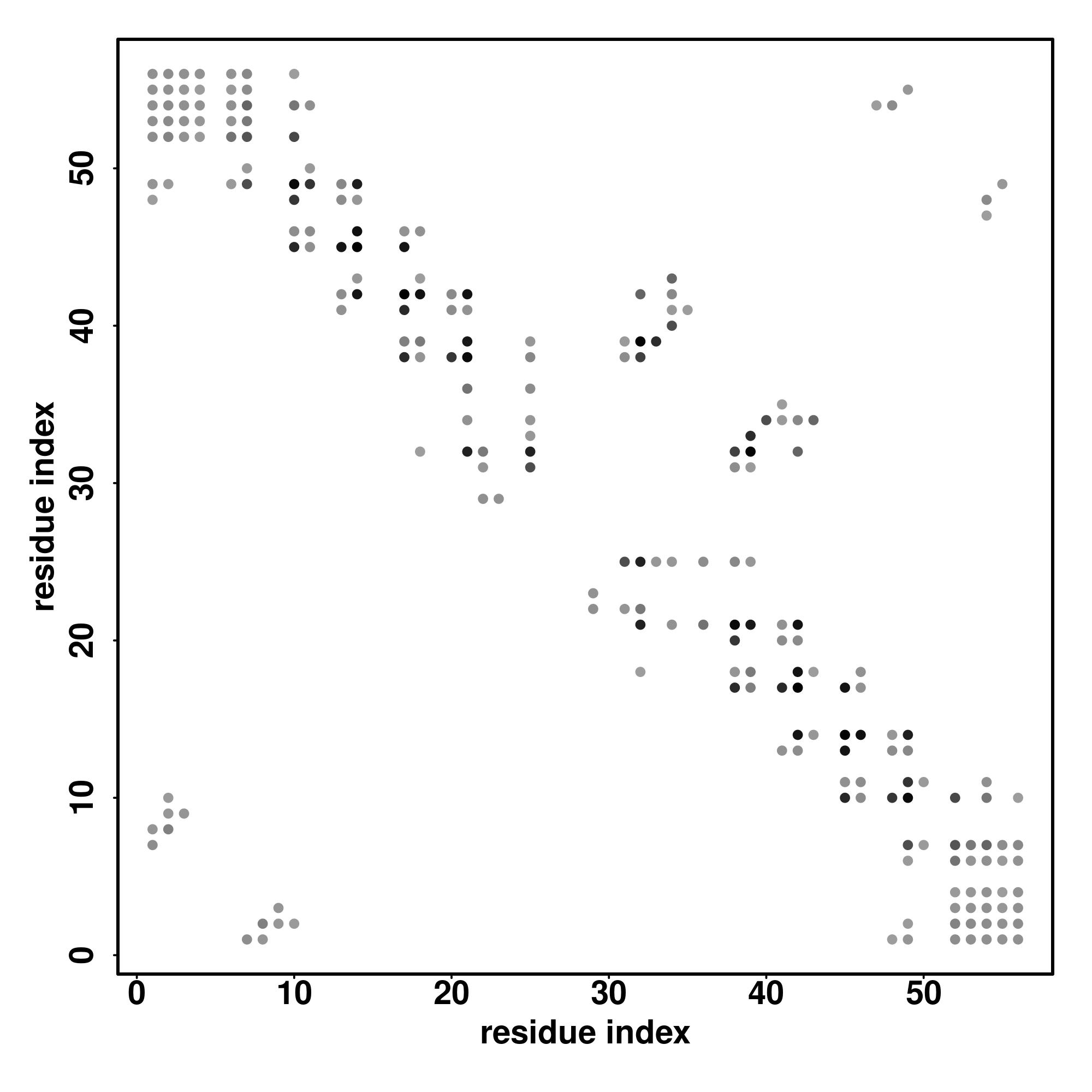For the contact map, each dot represents a residue pair with predicted contact,