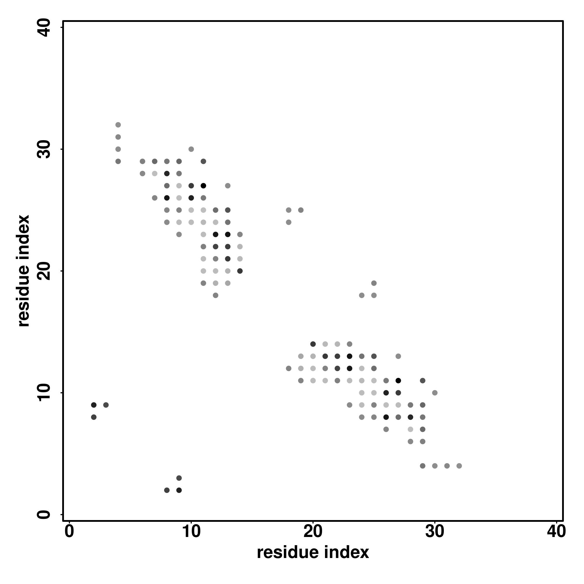 For the contact map, each dot represents a residue pair with predicted contact,