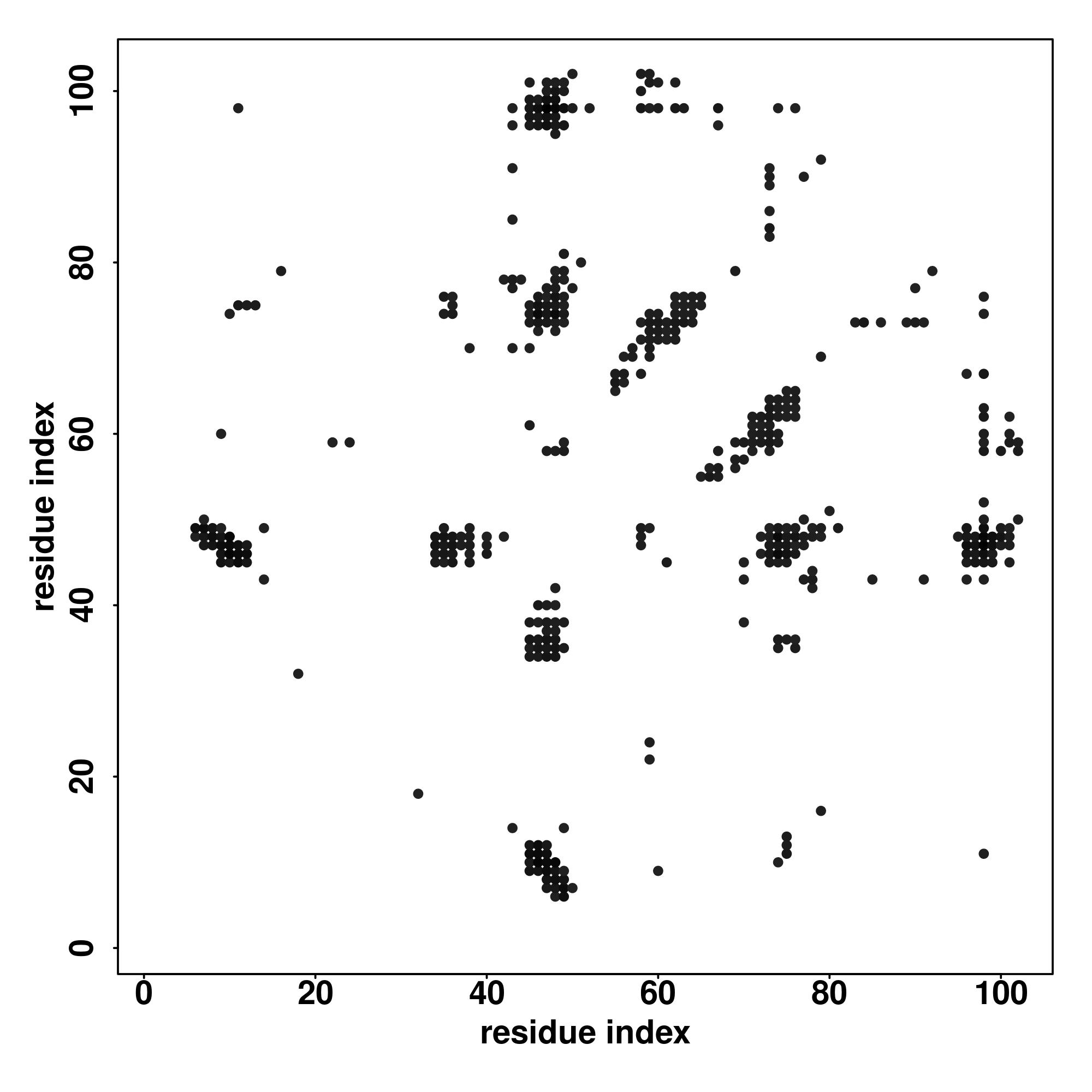 For the contact map, each dot represents a residue pair with predicted contact,