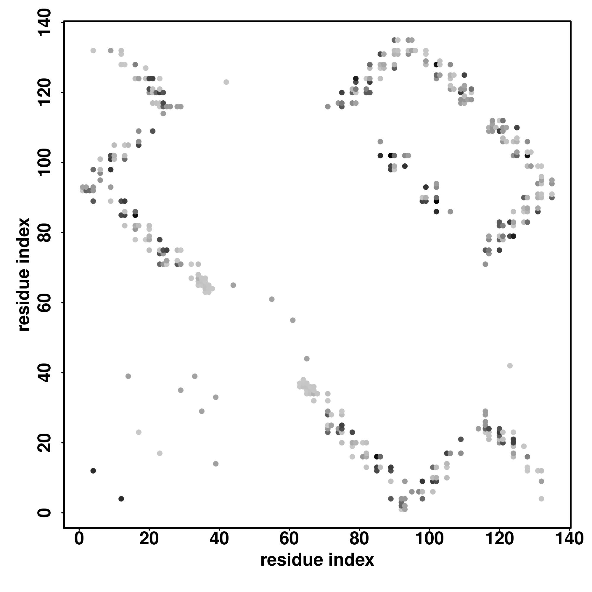 For the contact map, each dot represents a residue pair with predicted contact,