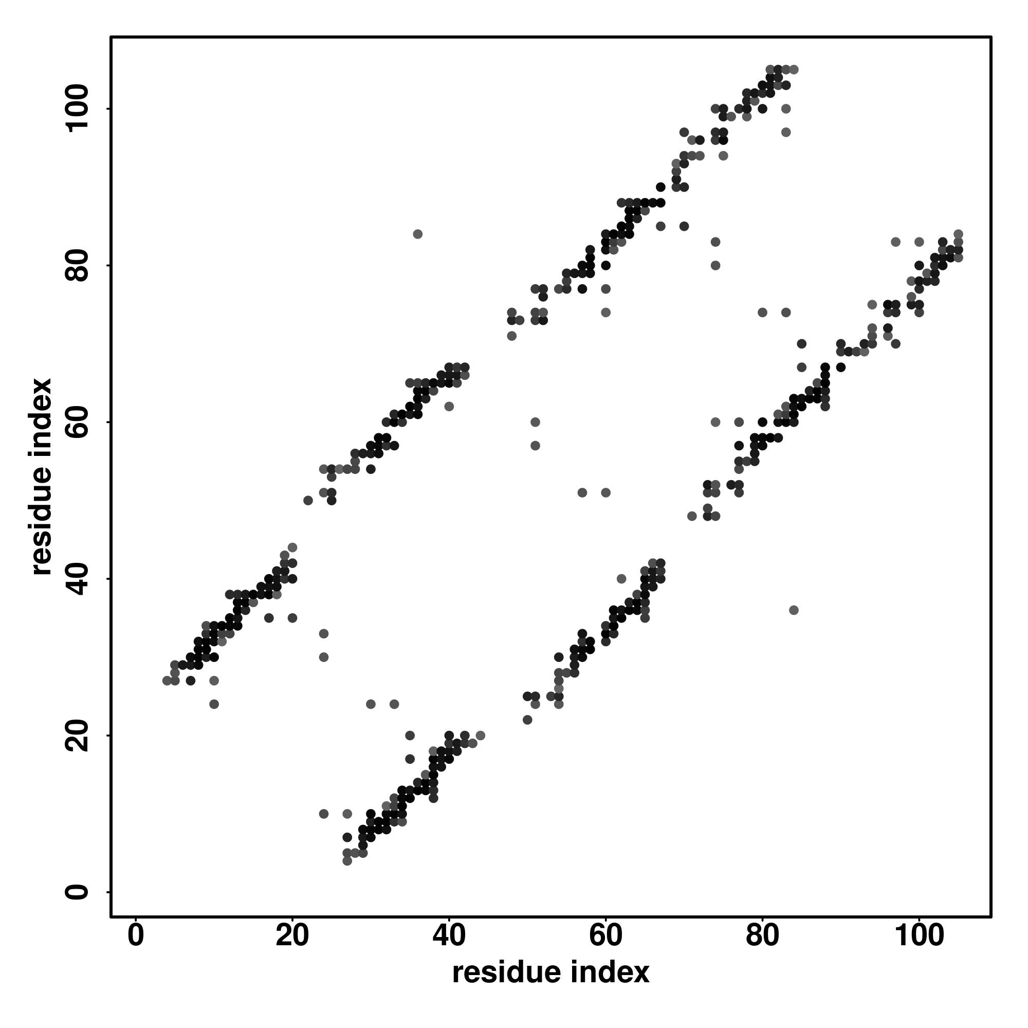 For the contact map, each dot represents a residue pair with predicted contact,