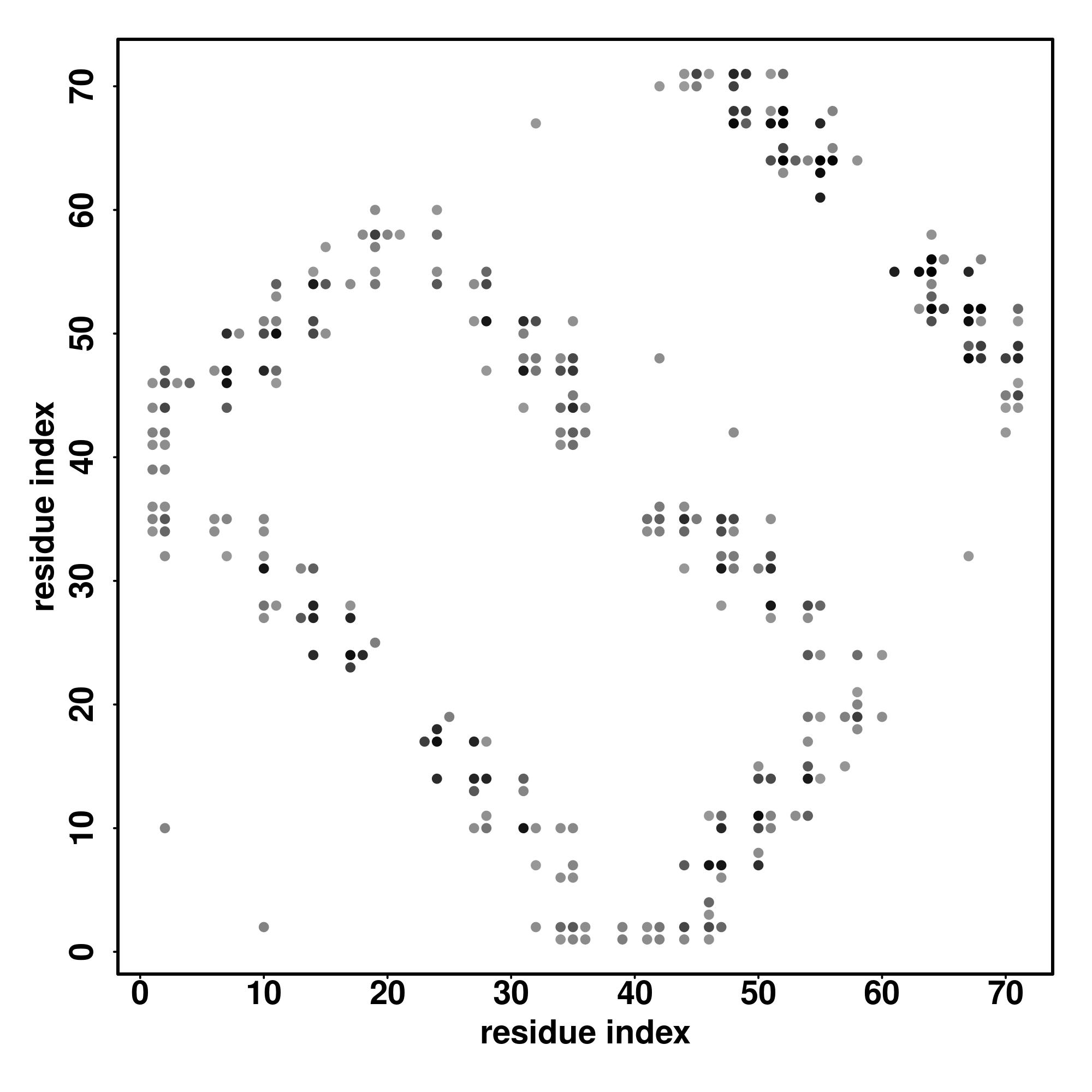 For the contact map, each dot represents a residue pair with predicted contact,