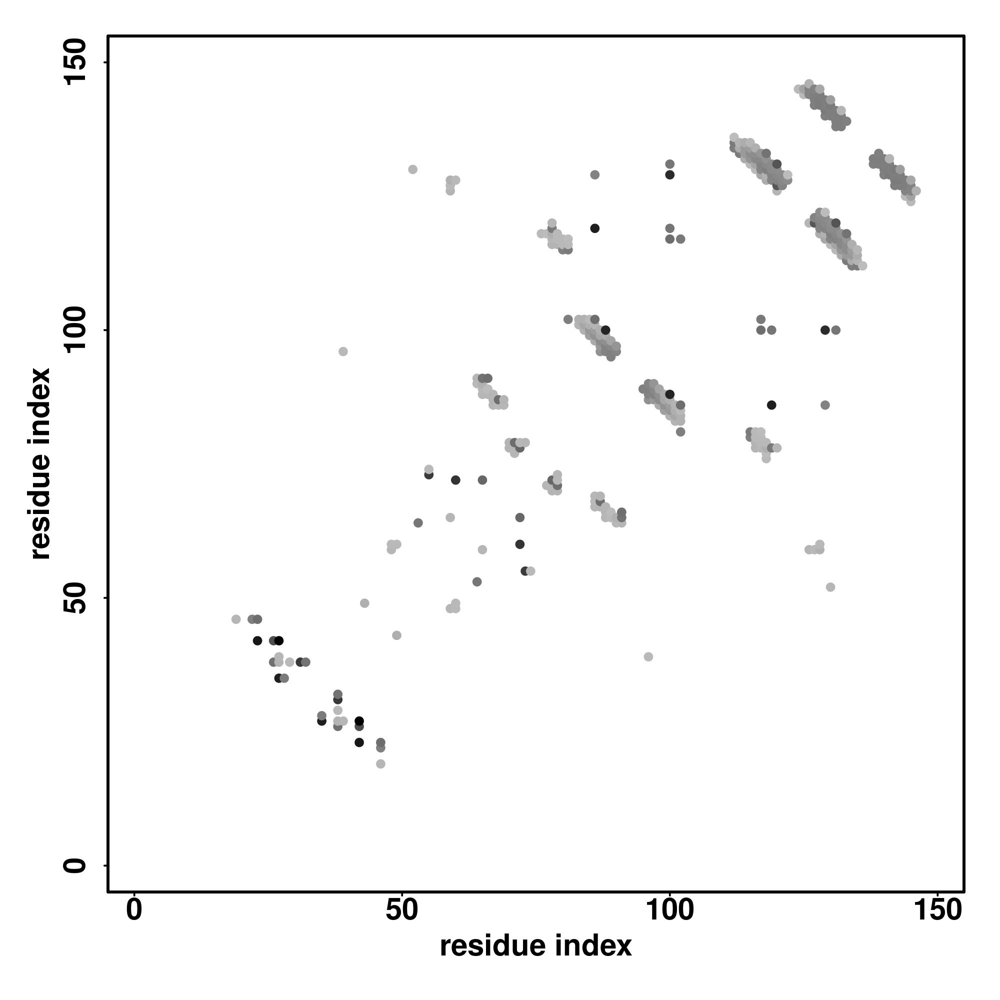 For the contact map, each dot represents a residue pair with predicted contact,