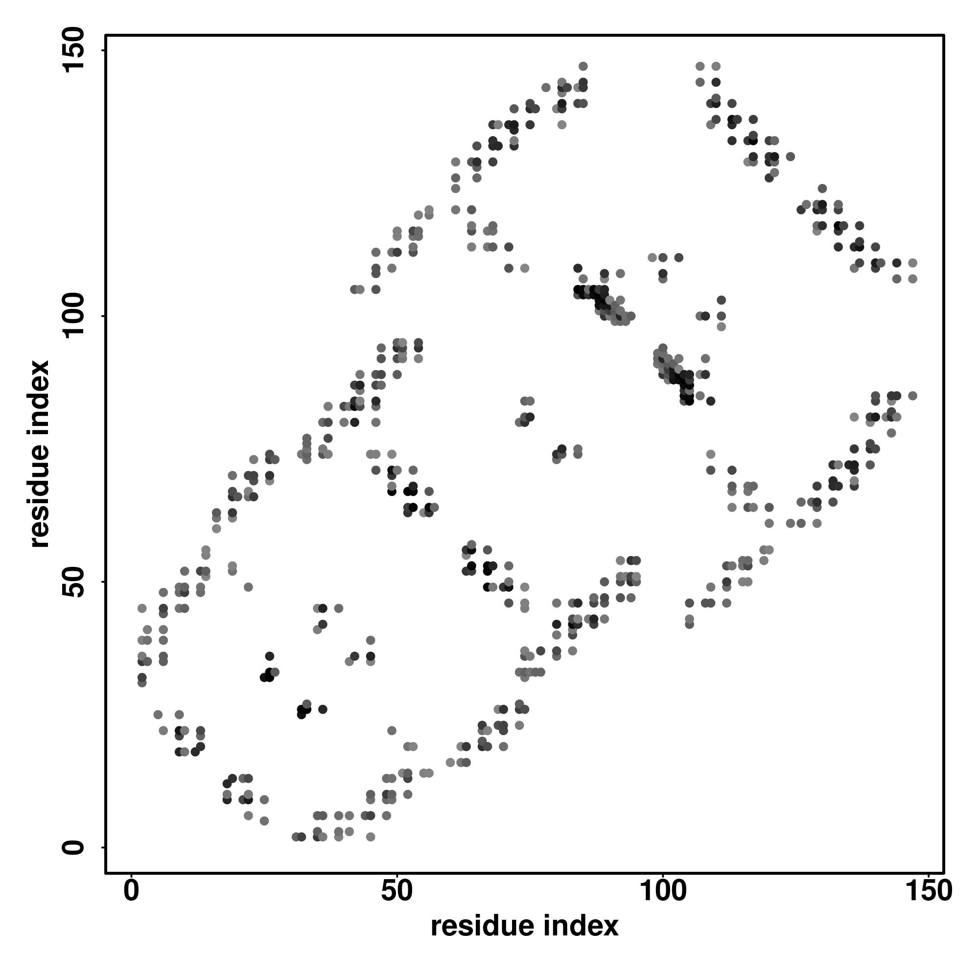 For the contact map, each dot represents a residue pair with predicted contact,