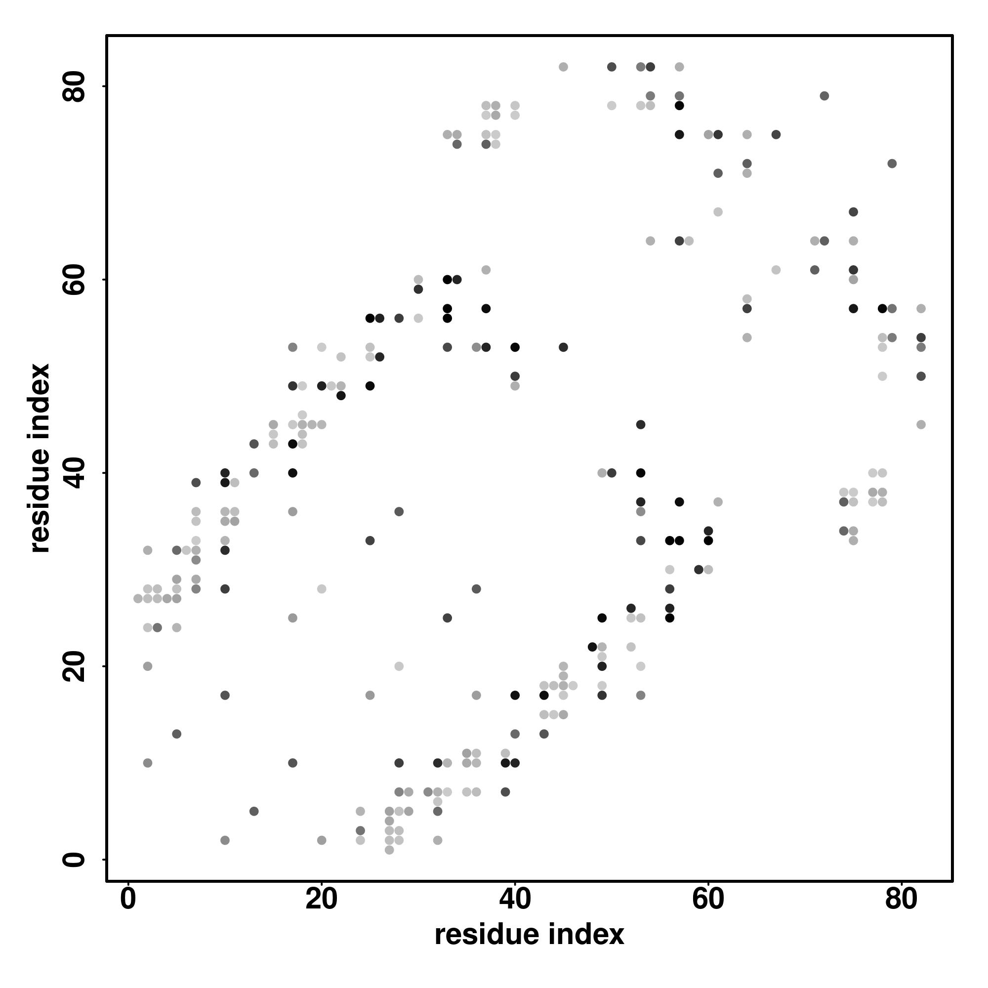For the contact map, each dot represents a residue pair with predicted contact,