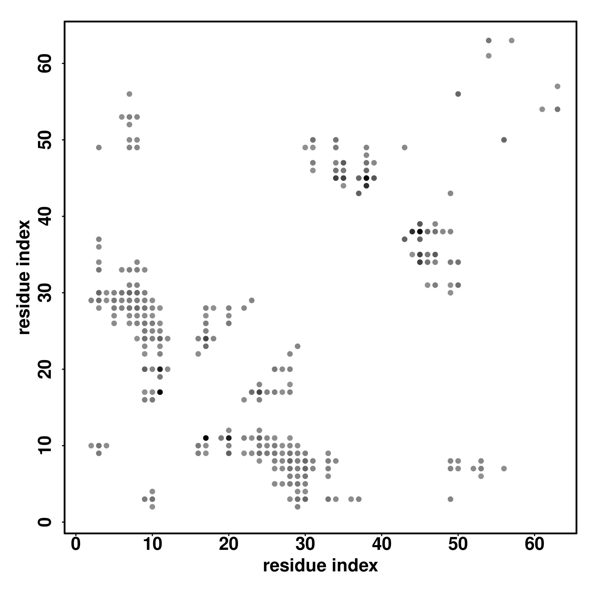 For the contact map, each dot represents a residue pair with predicted contact,