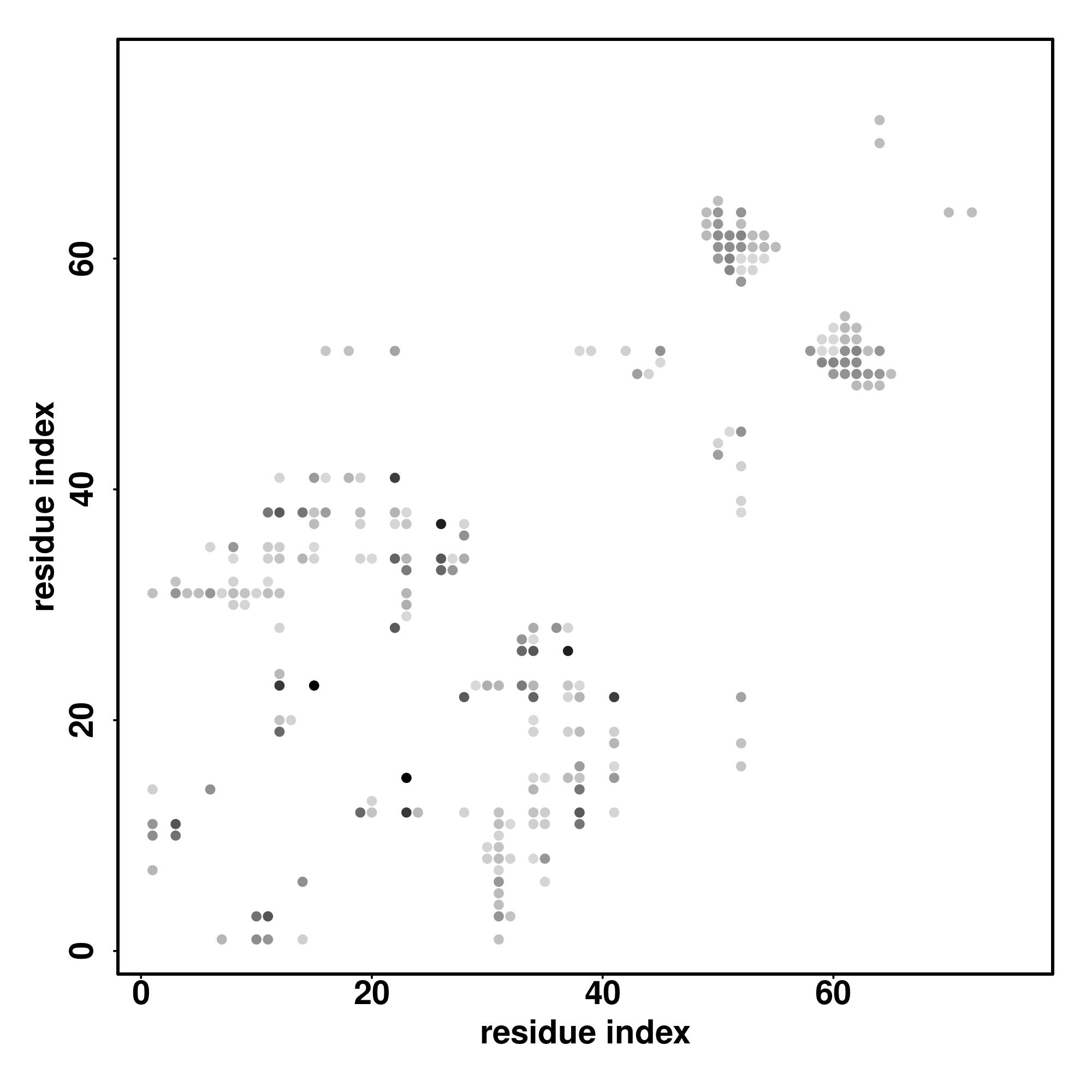 For the contact map, each dot represents a residue pair with predicted contact,