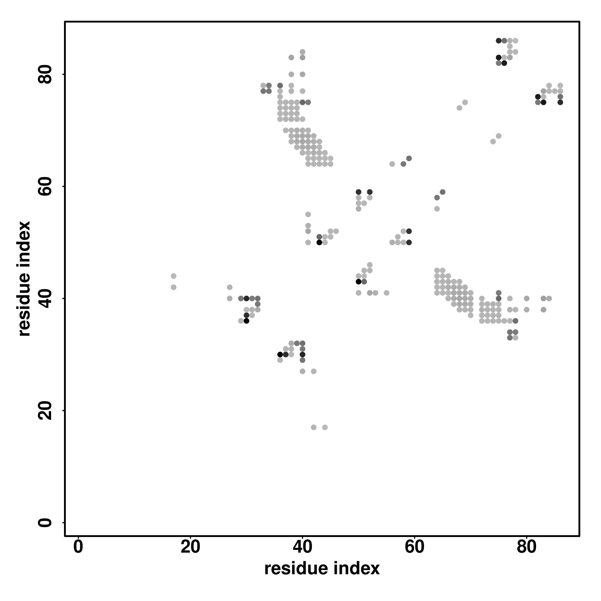 For the contact map, each dot represents a residue pair with predicted contact,