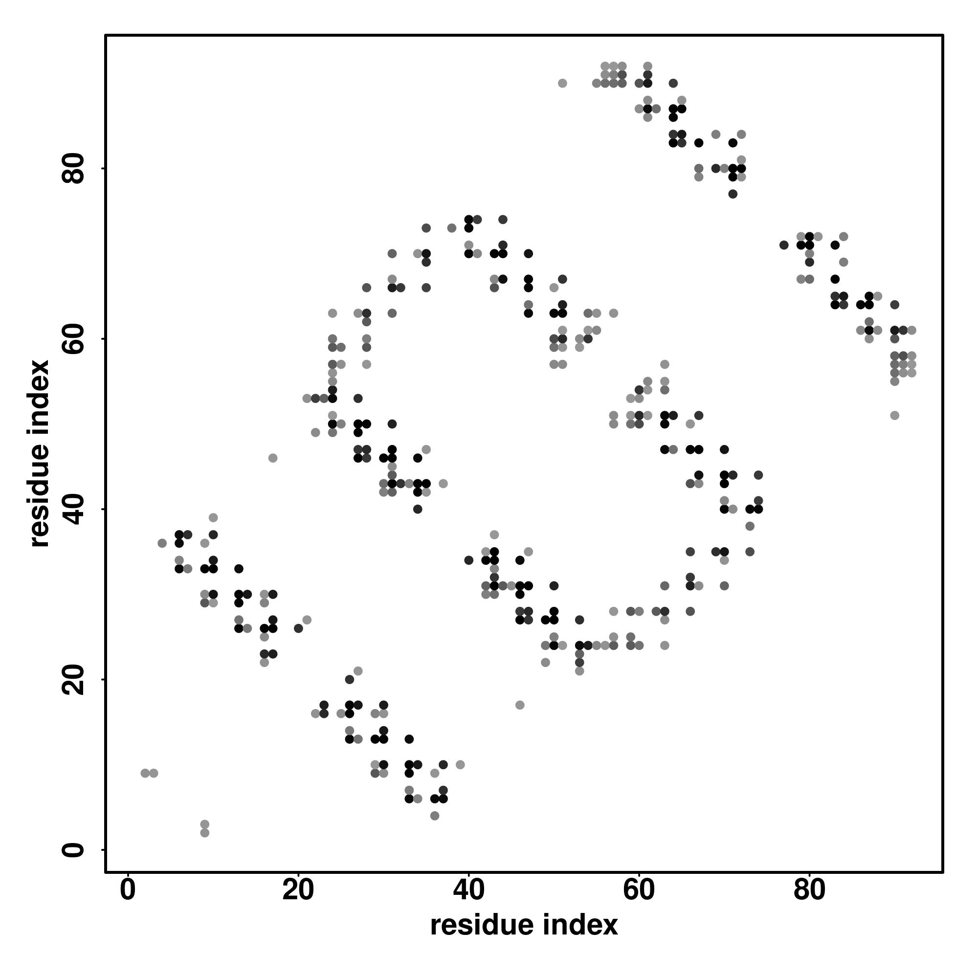 For the contact map, each dot represents a residue pair with predicted contact,