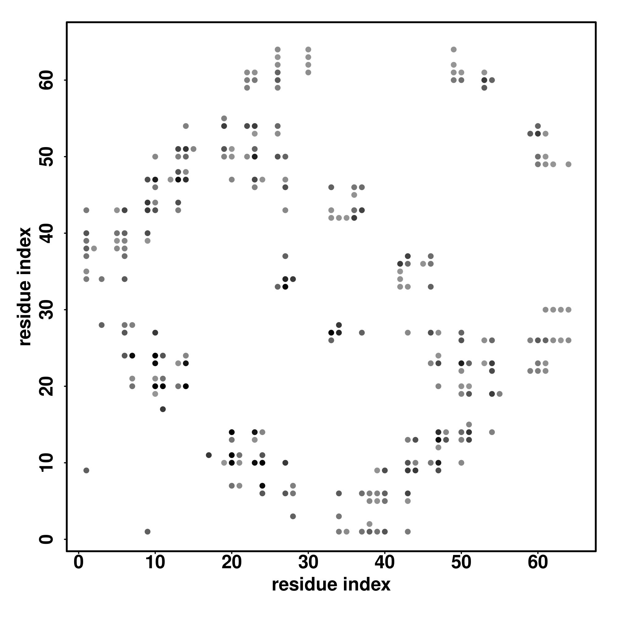 For the contact map, each dot represents a residue pair with predicted contact,