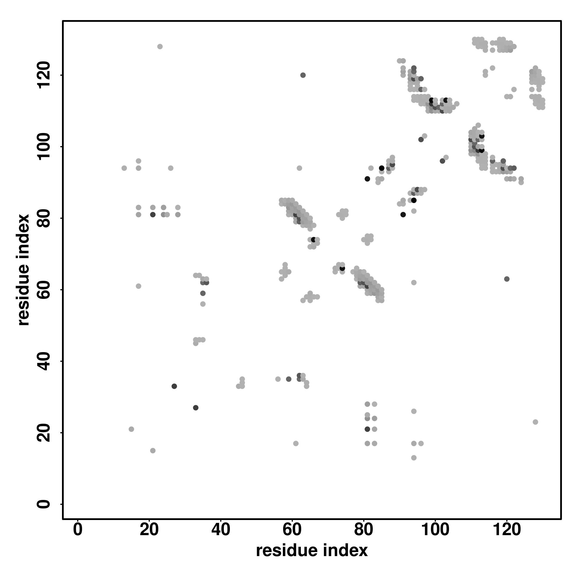 For the contact map, each dot represents a residue pair with predicted contact,