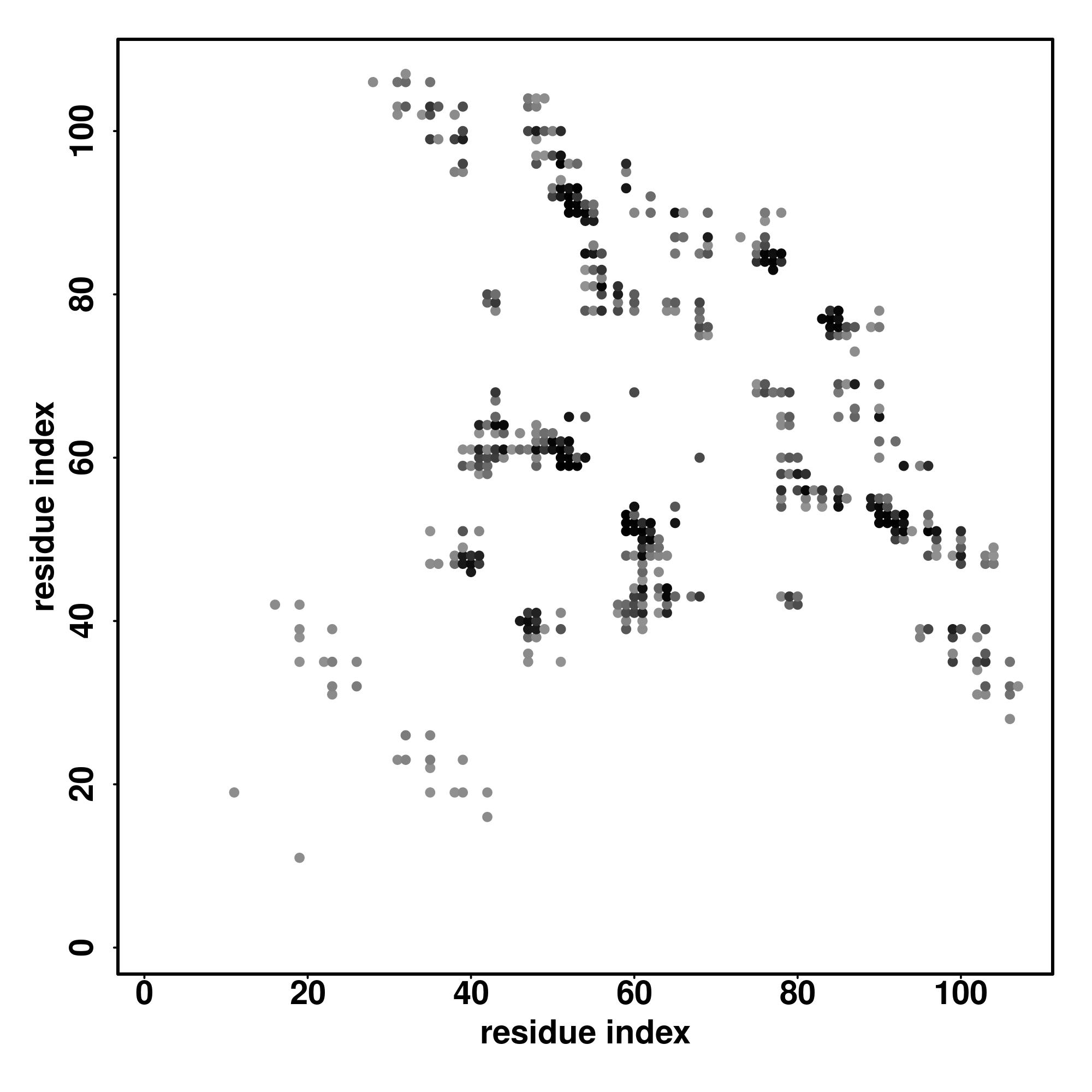 For the contact map, each dot represents a residue pair with predicted contact,