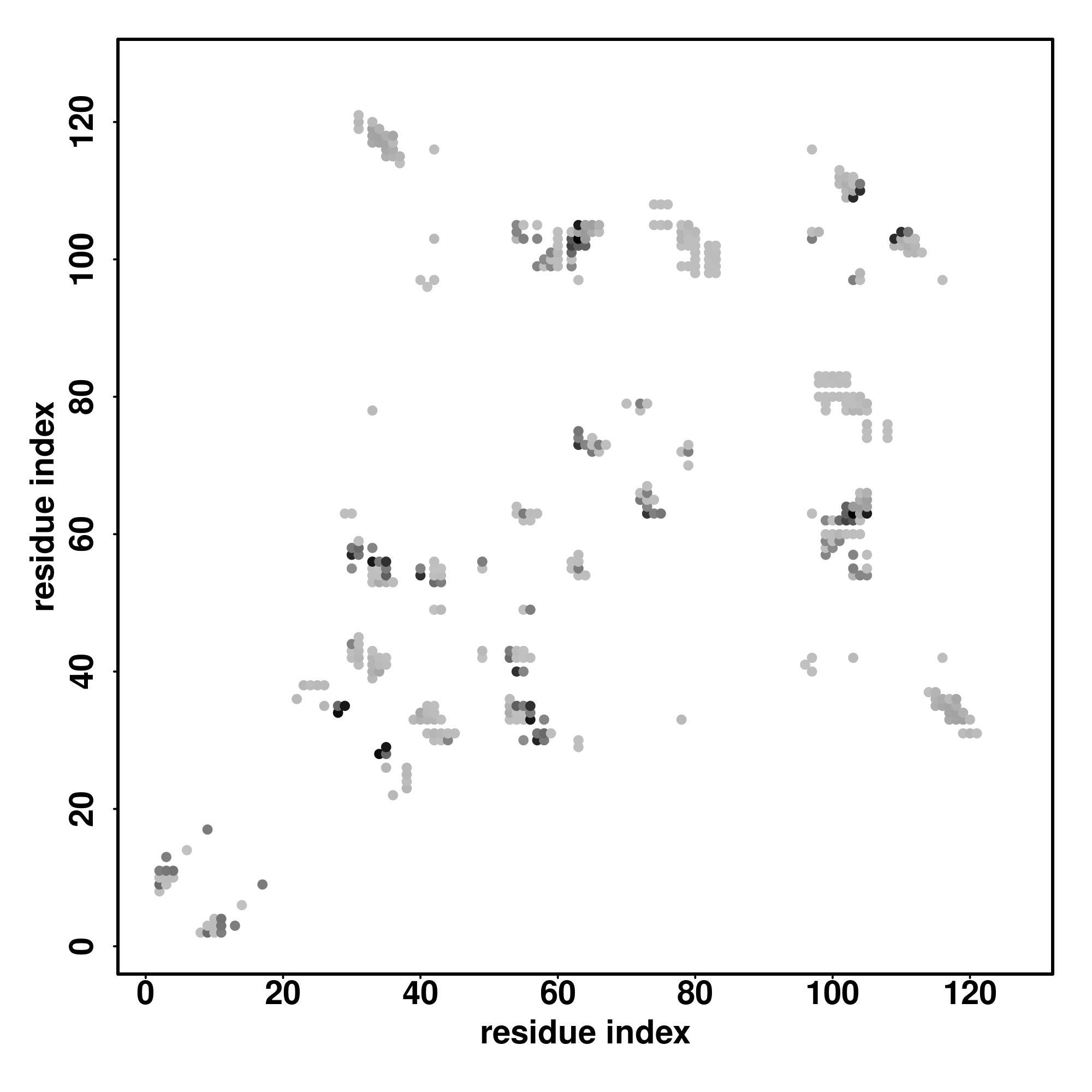 For the contact map, each dot represents a residue pair with predicted contact,