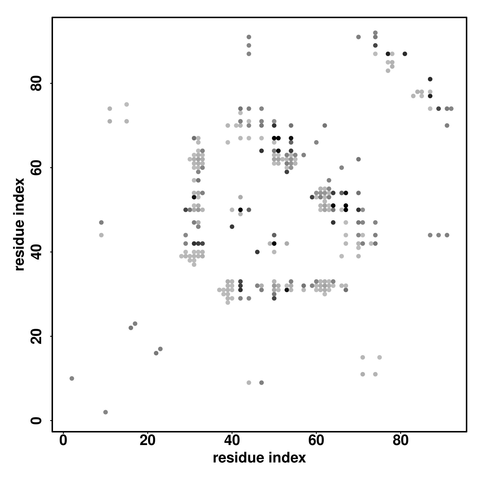 For the contact map, each dot represents a residue pair with predicted contact,