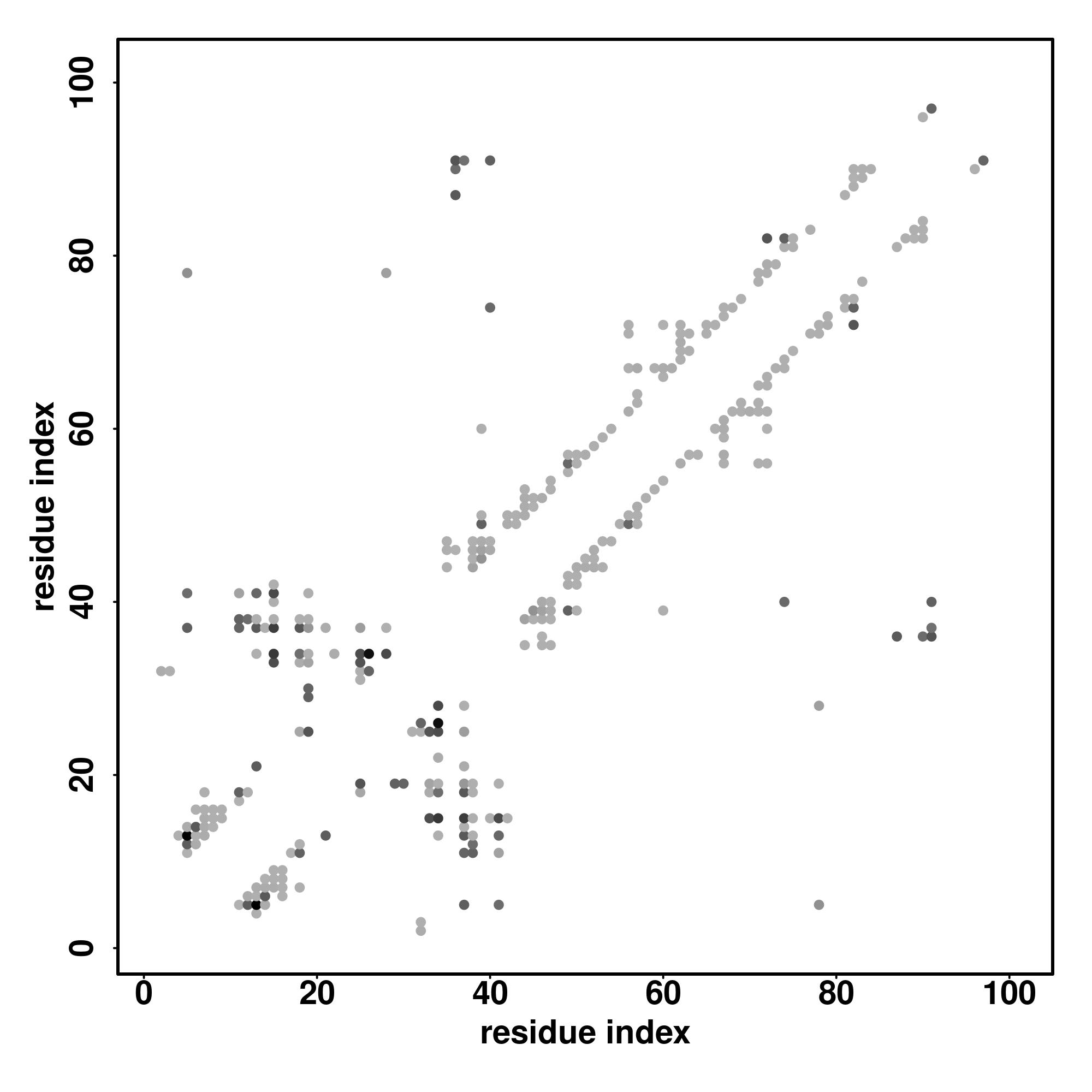 For the contact map, each dot represents a residue pair with predicted contact,